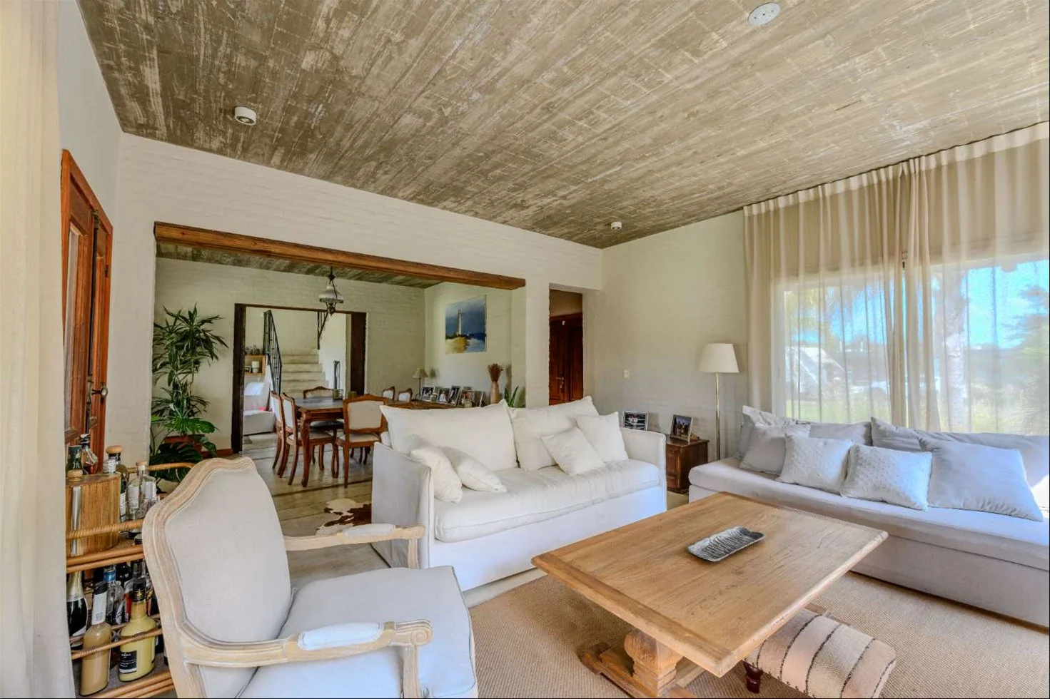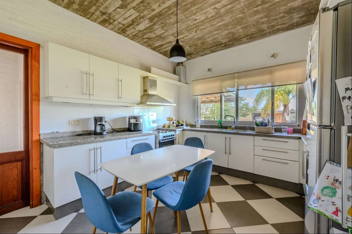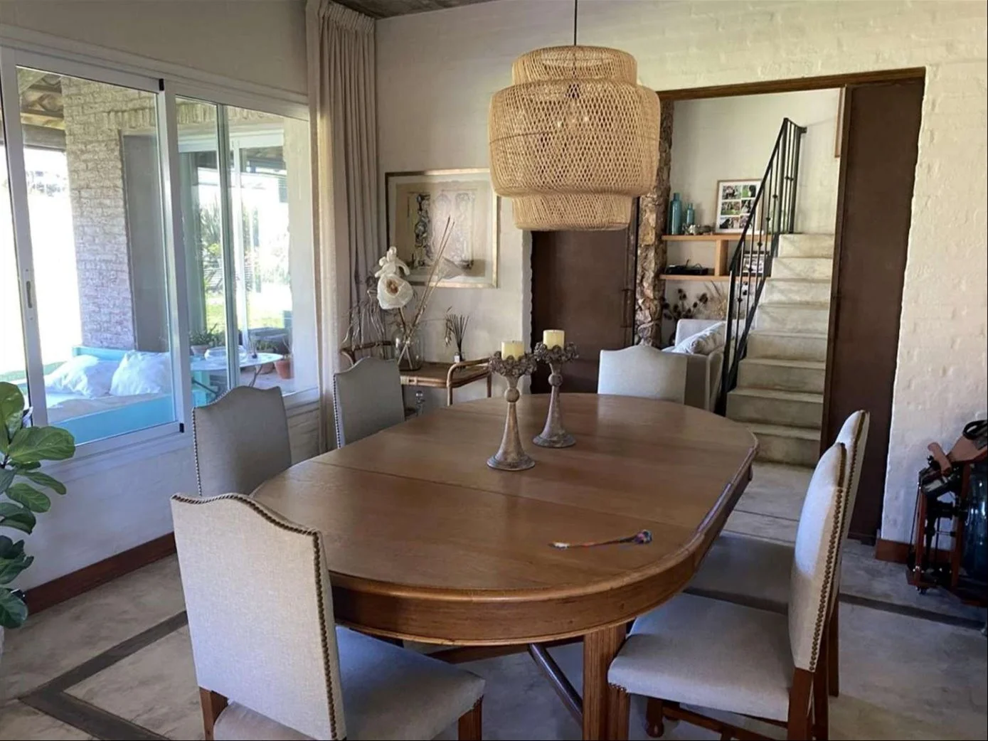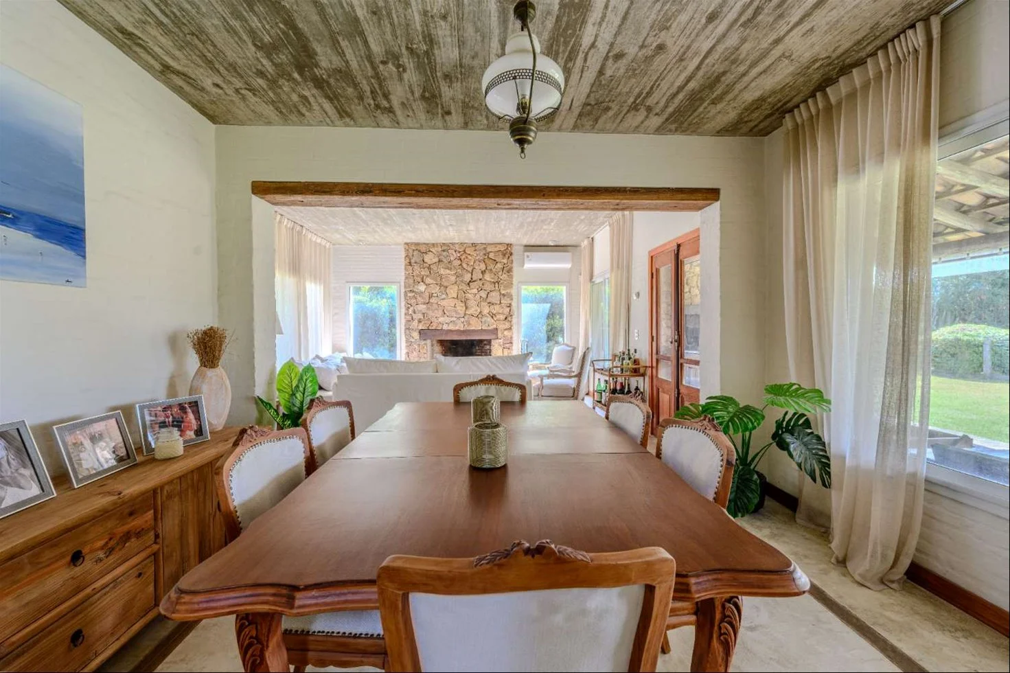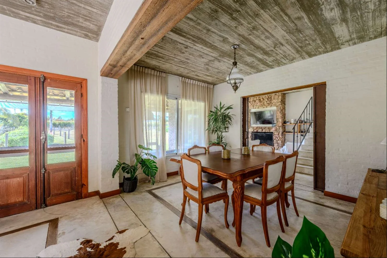 En planta baja cuenta con hall de entrada, despojador, living–comedor y estar con estufa a leña, ambos con salida a una amplia galería con parrillero, baño social, cocina, lavadero interno y dormitorio de servicio completo.