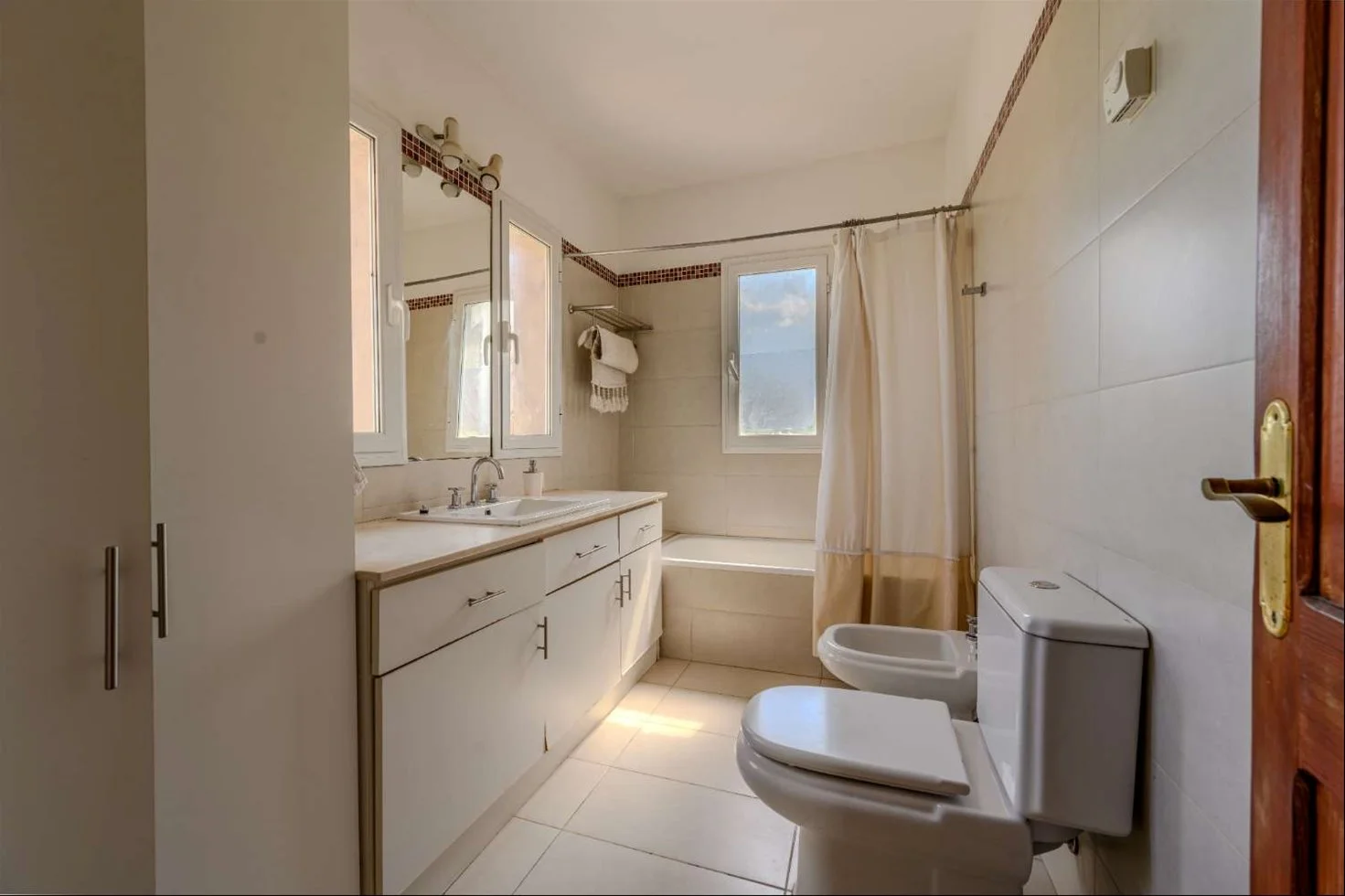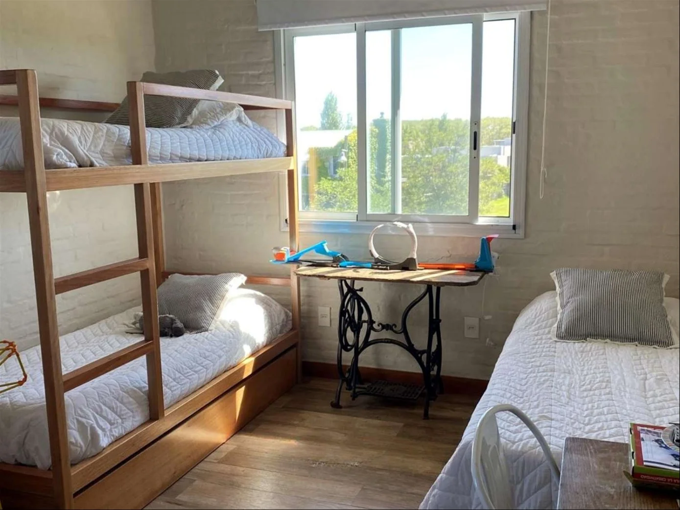 En planta alta dispone de 3 dormitorios, uno de ellos en suite con vestidor, y un baño completo que comparten los otros dos dormitorios.