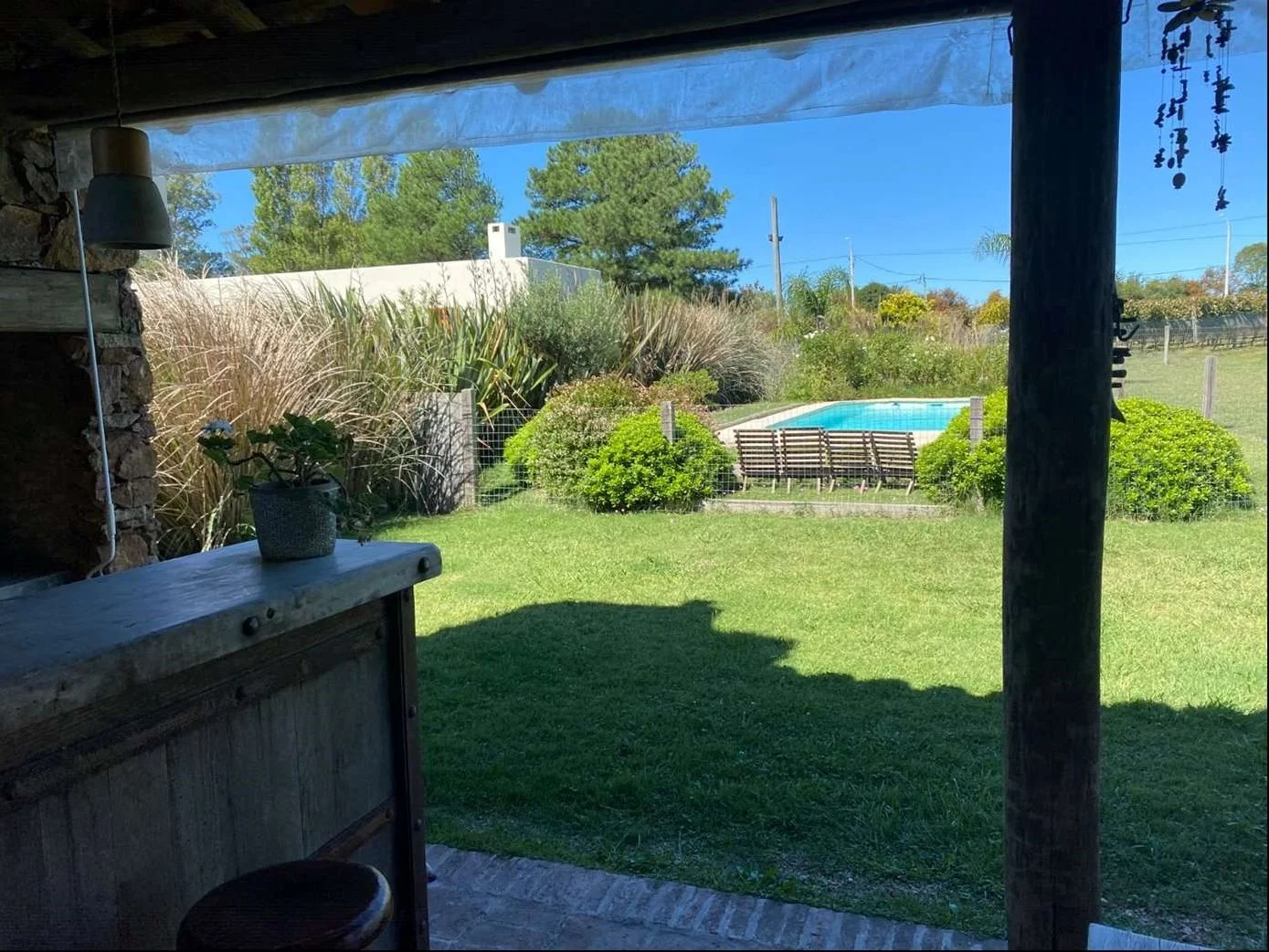 La propiedad se completa con cochera techada para dos autos, calefacción eléctrica por ambiente y un lindo fondo con piscina, muy soleado y con agradable vista a los viñedos.