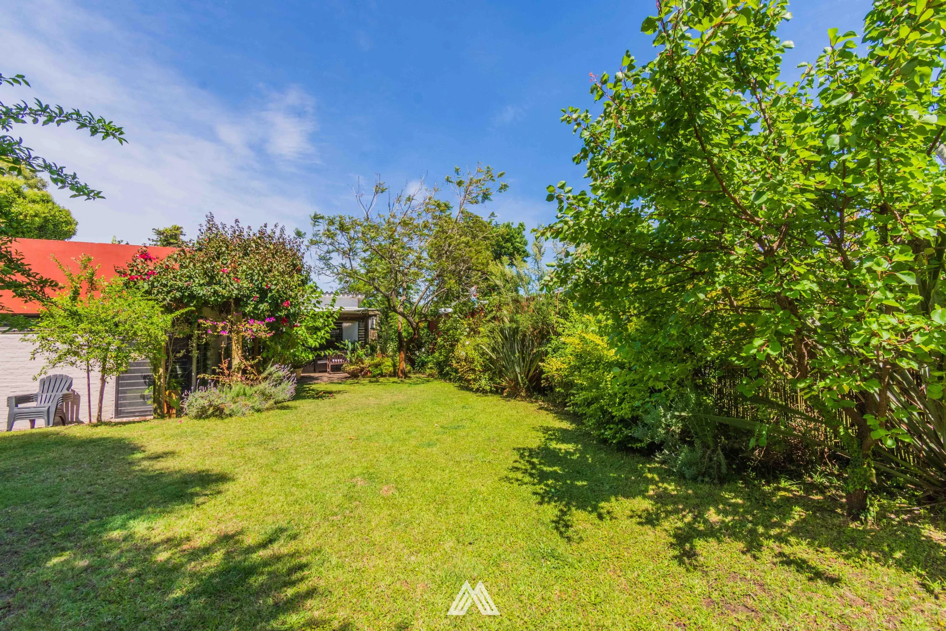 El exterior es una invitación a disfrutar, jardín al frente y fondo con riego automático, un entorno verde que abraza la casa. En el fondo, una pérgola techada de 24 m² con parrillero, rodeada de plantas, crea el escenario perfecto para encuentros, sobremesas, tardes largas al aire libre o simplemente desconectar rodeado de naturaleza.