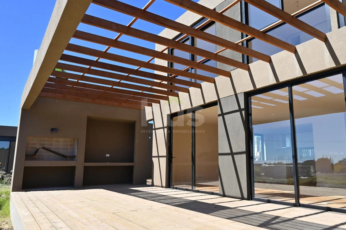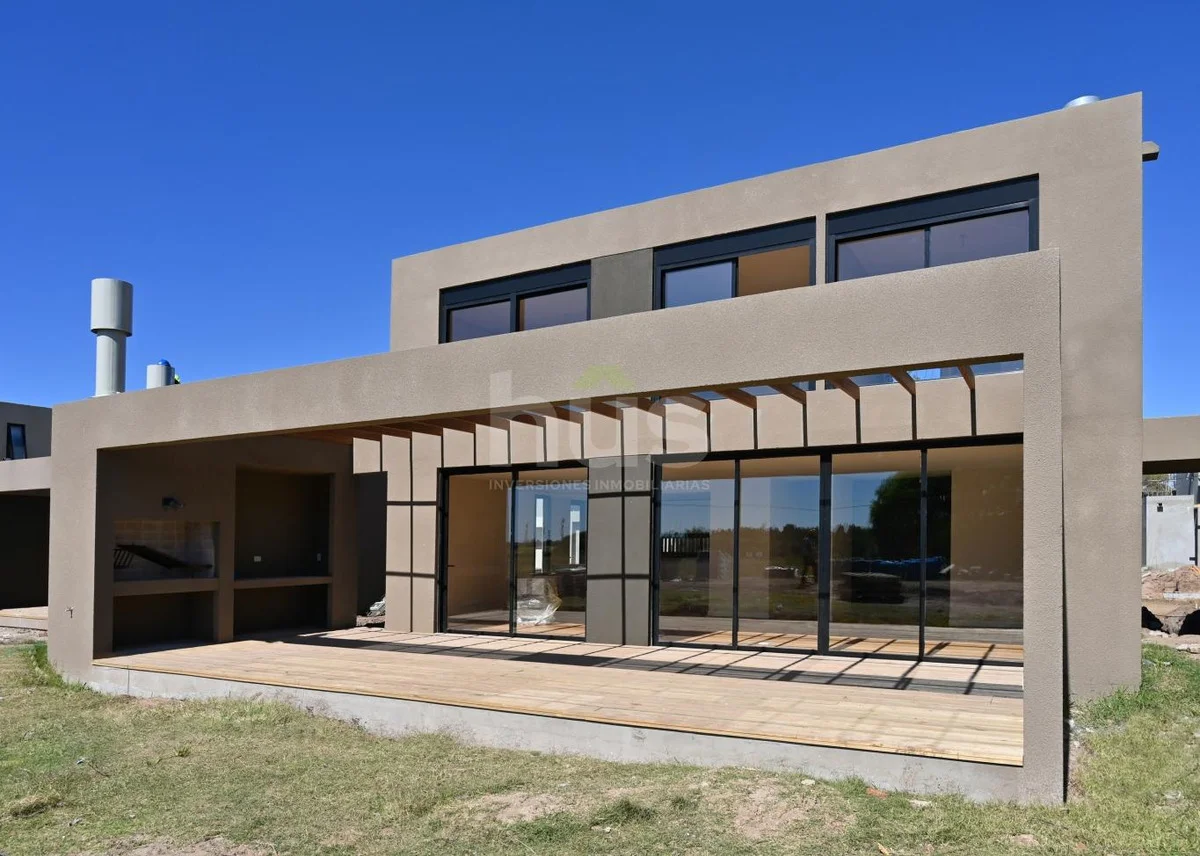 Muy linda Casa desarrollada en 2 plantas, tipología 3 plus. Hall de entrada, amplio living-comedor con estufa a leña, baño social, cocina semi integrada con barra, amplios ventanales de piso a techo. Estar o escritorio independiente con baño. En la planta alta cuenta con tres dormitorios y dos baños (principal en suite con vestidor). Gran deck de madera, parrillero y amplio jardín. Pisos de roble, vidrio doble en todas las aberturas, baños y cocinas de bosch. Calefacción por losa radiante a gas. Club house con barbacoa, cowork, piscina, cancha de tennis y padel. Seguridad 24 hs Gastos comunes $12.500