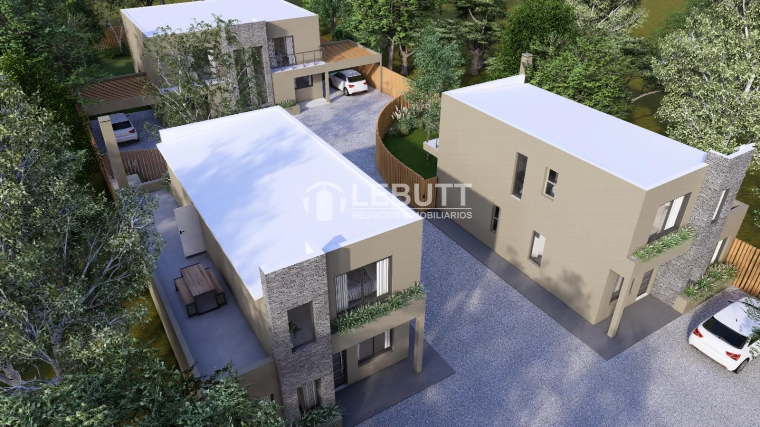 Se trata de Complejo cerrado con 4 casas en régimen de propiedad horizontal, ubicadas en un entorno residencial de privilegio, rodeado de naturaleza y la privacidad que tanto deseas. Son 2 casas al frente y 2 casas al fondo muy bien ubicadas dentro del predio. Cada una dispondrá de un Terreno con 280/300 mts y cada planta tendrá unos 90/100 mts2 aprox.