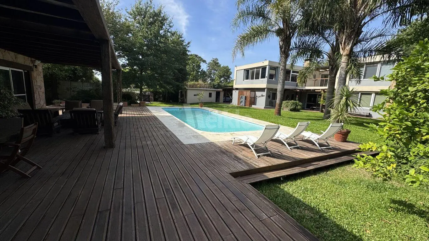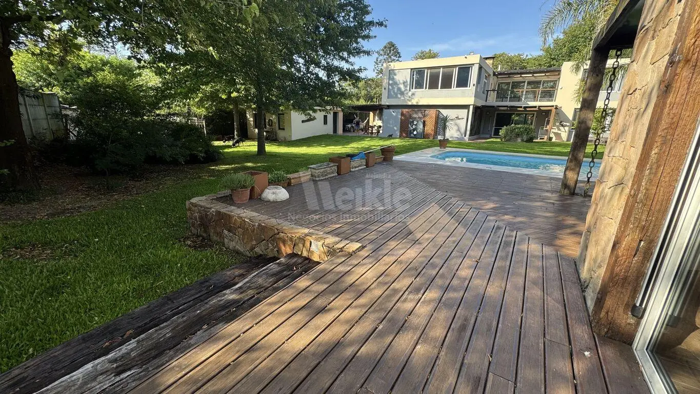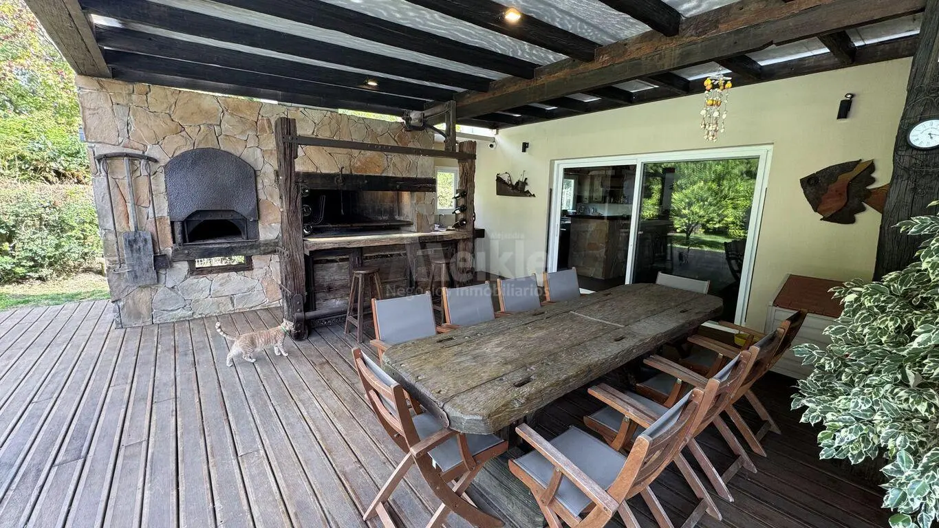 Gran parrillero con mesada, Horno de pan y barra, acompañado de un amplio deck con solarium y piscina,