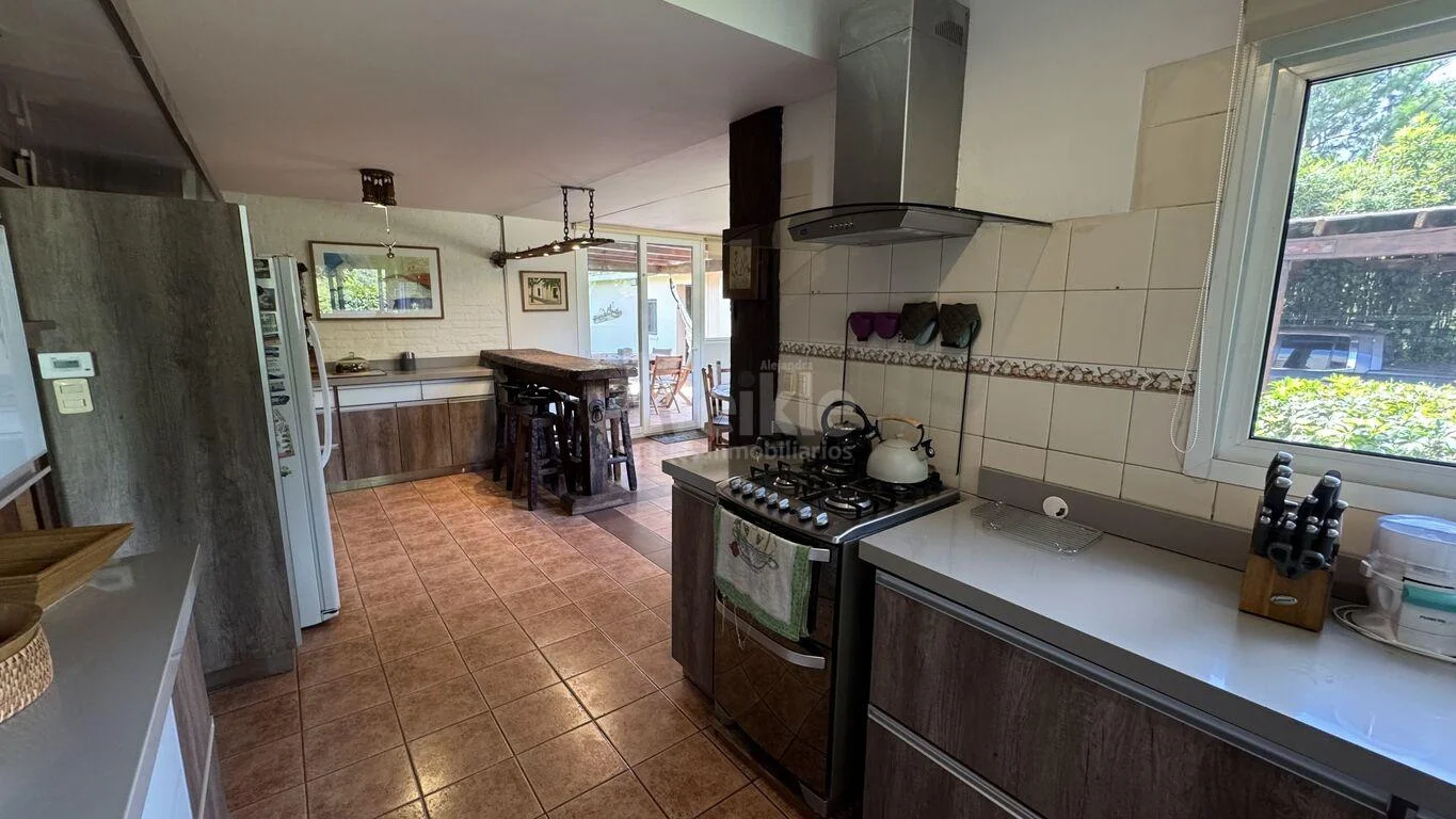 Amplia cocina comedor, con barra desayunador y vistas al jardín.