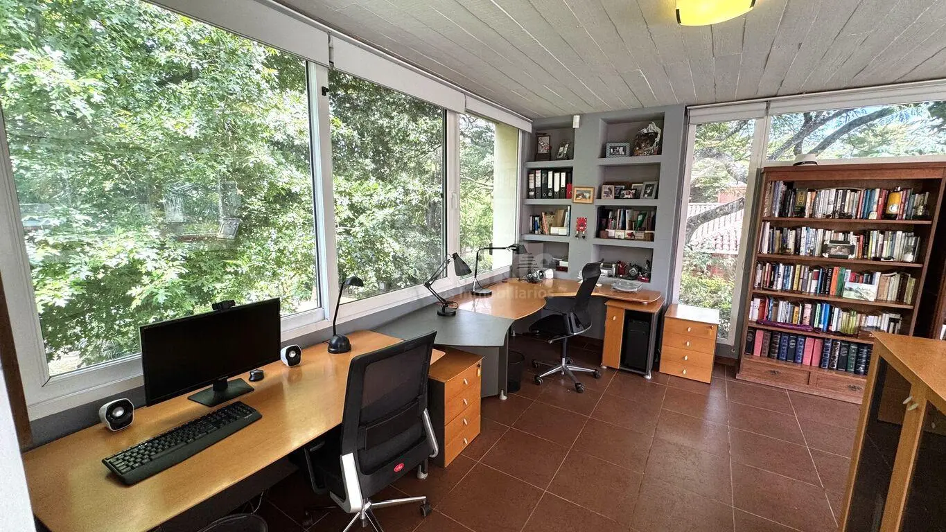 Espacio de Trabajo : Gran escritorio con biblioteca, equipado con tres escritorios de diseño y con vistas excepcionales al jardín.