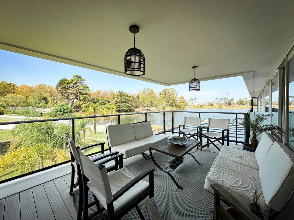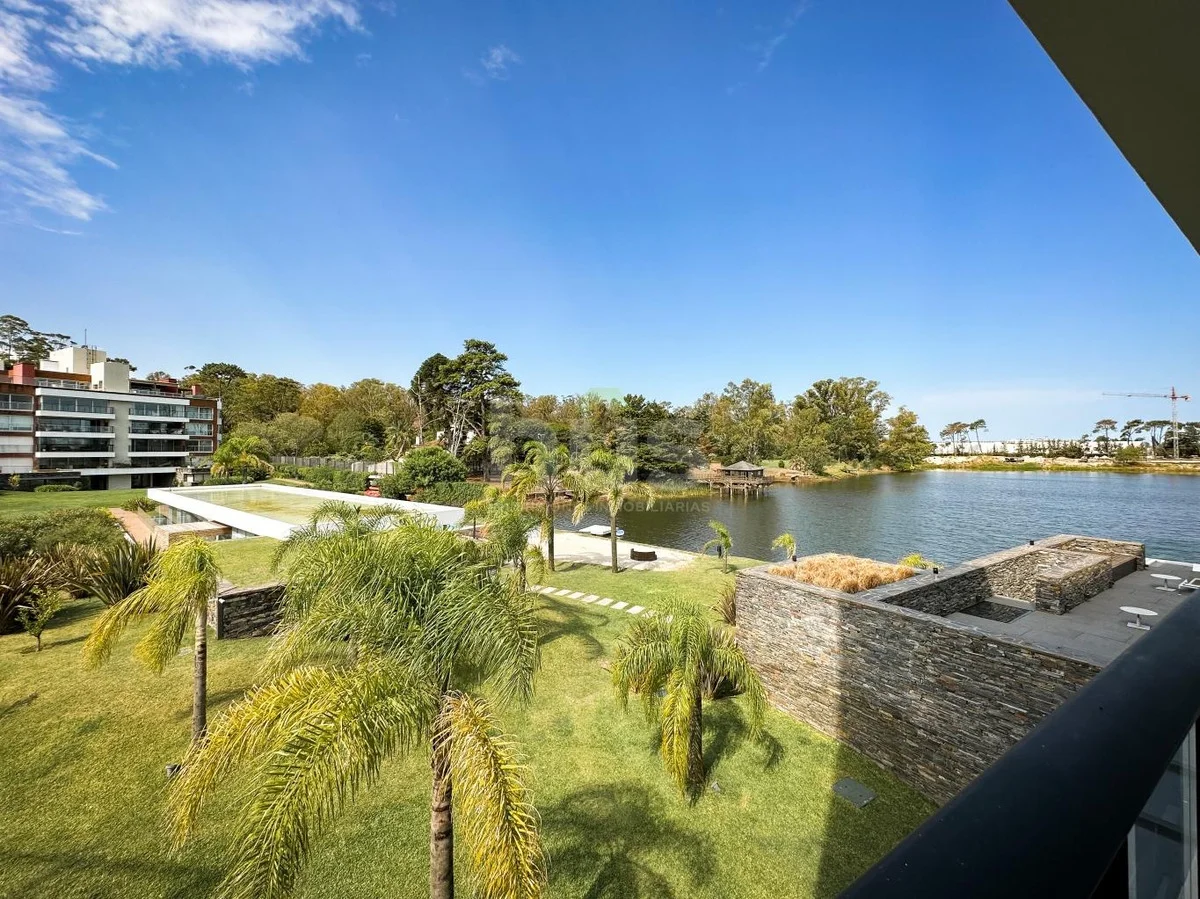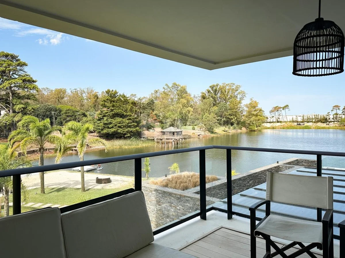 Hall de entrada, amplio living-comedor apaisado, baño social, divina terraza con parrillero y espectacular vista jardín y lago. Cocina definida con lavadero. Suite principal con baño, jacuzzi y vestidor. Dos dormitorios y un baño.
