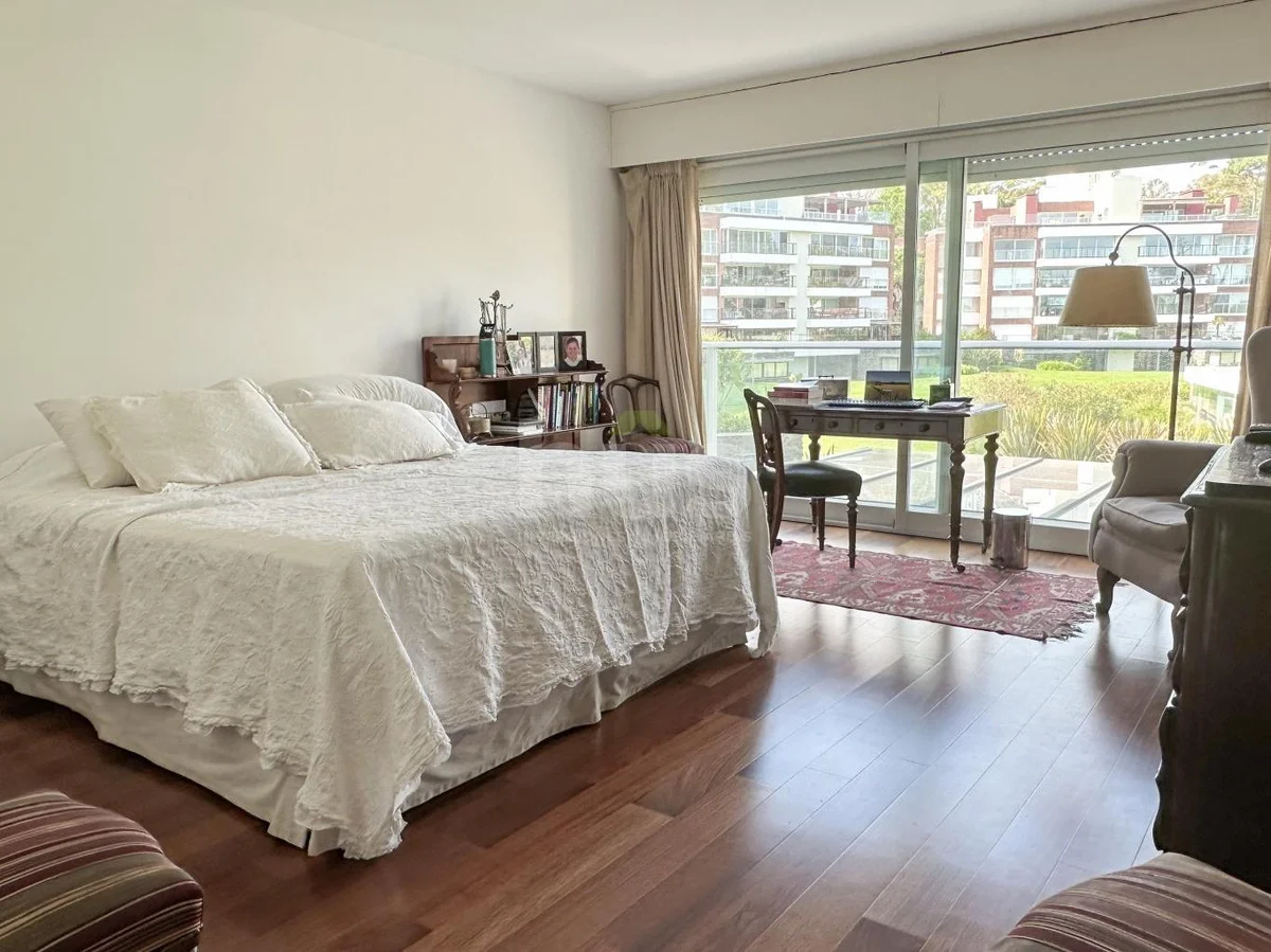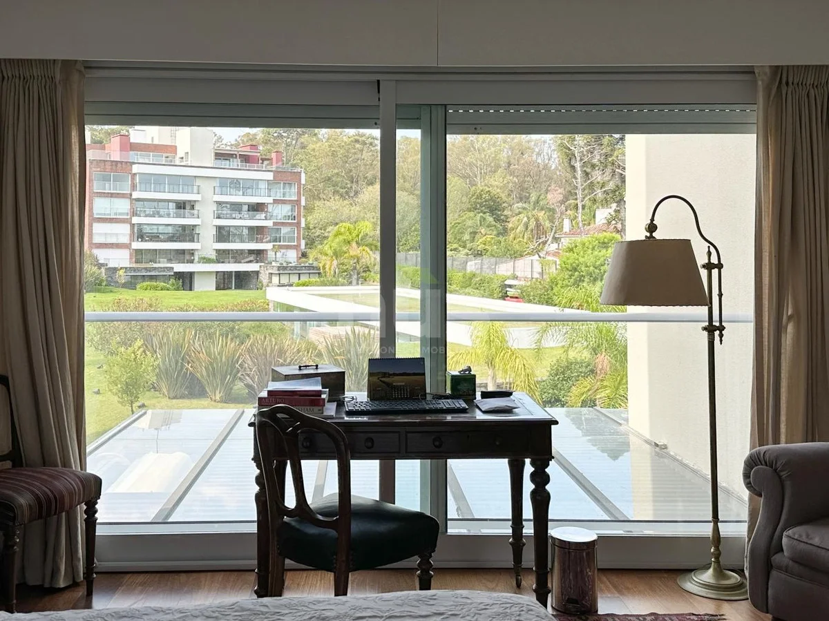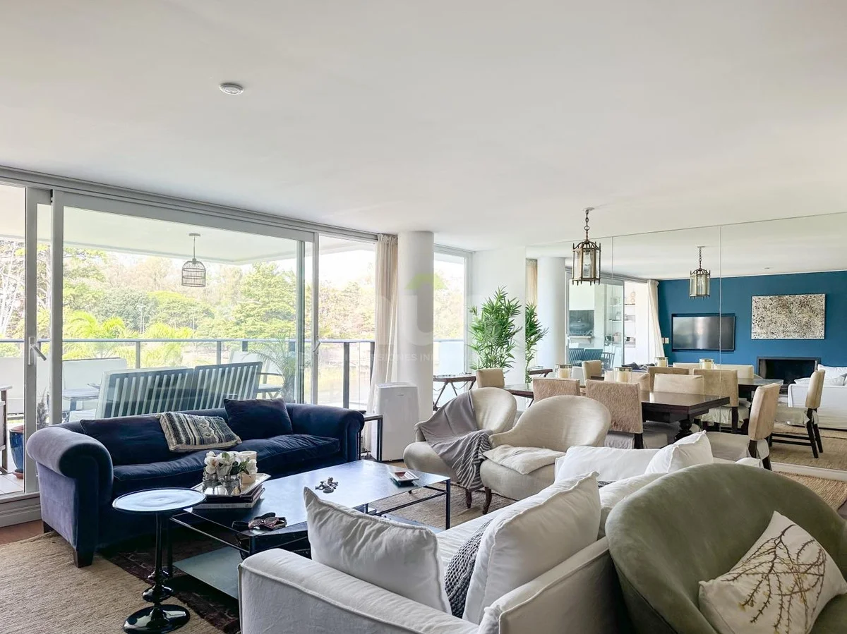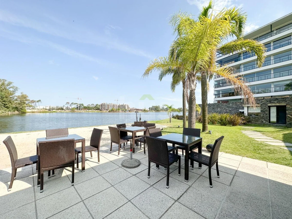 Hall de entrada, amplio living-comedor apaisado, baño social, divina terraza con parrillero y espectacular vista jardín y lago. Cocina definida con lavadero. Suite principal con baño, jacuzzi y vestidor. Dos dormitorios y un baño.