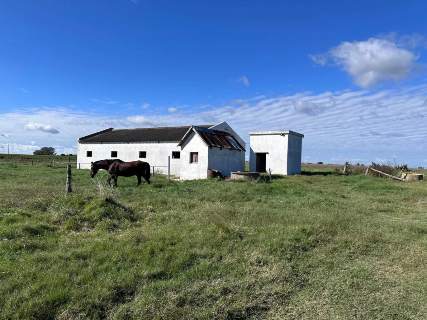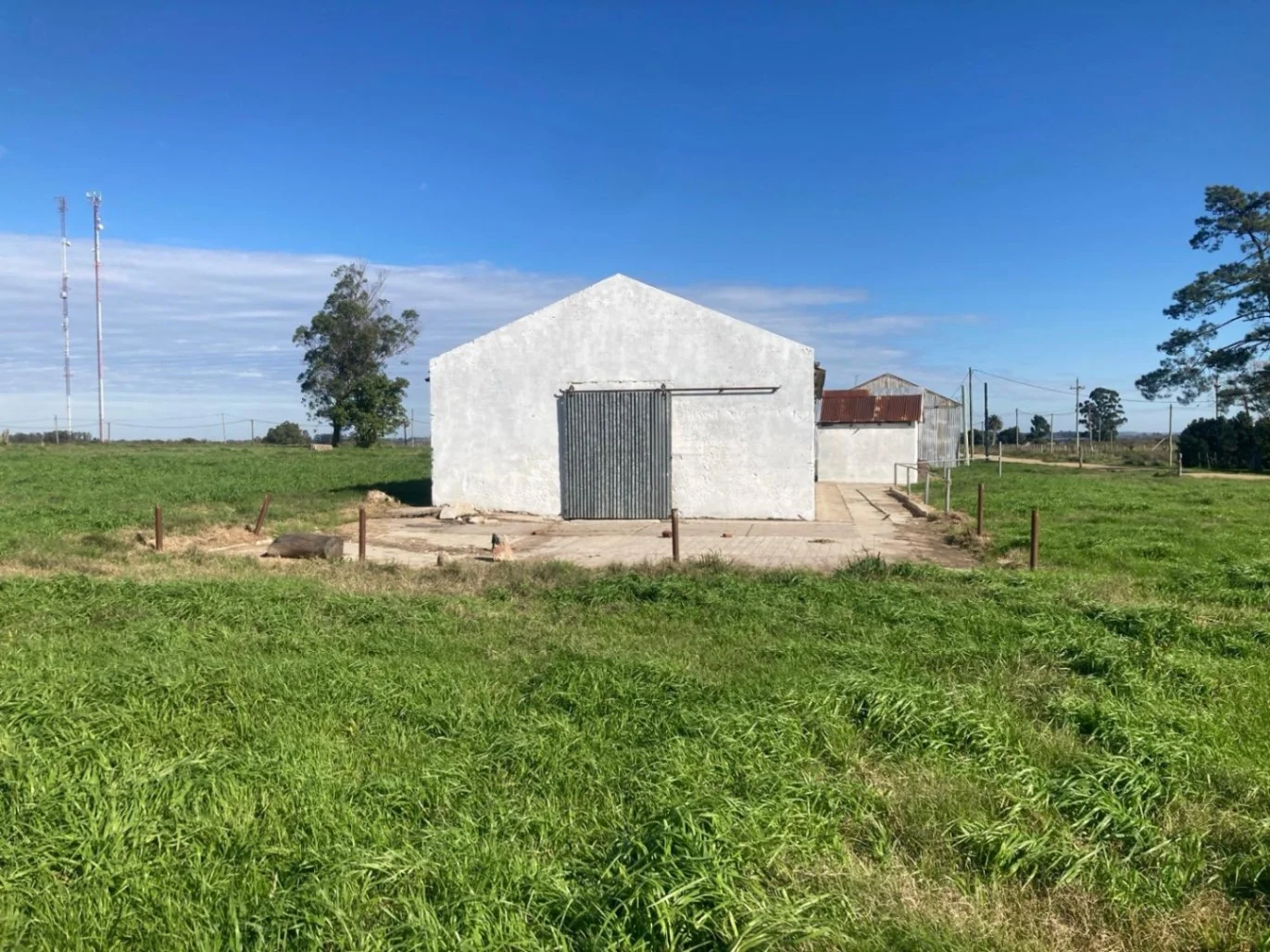 • Galpón ex tambo, construido en ladrillo, con piso de hormigón de 15,42 m x 7,7 m, ideal para almacenamiento o uso industrial (incluye fosa).