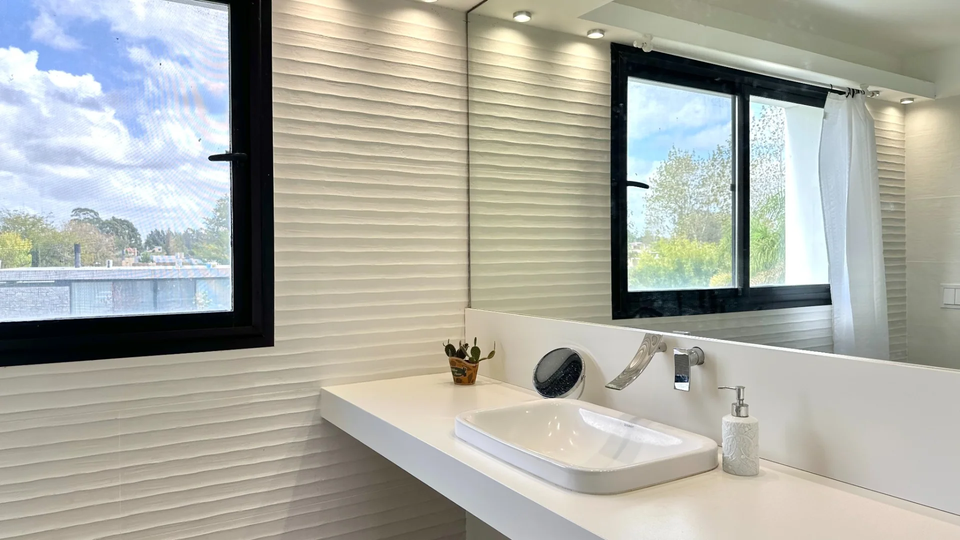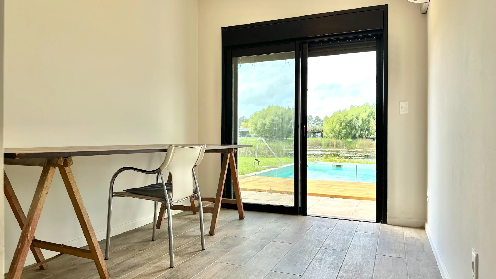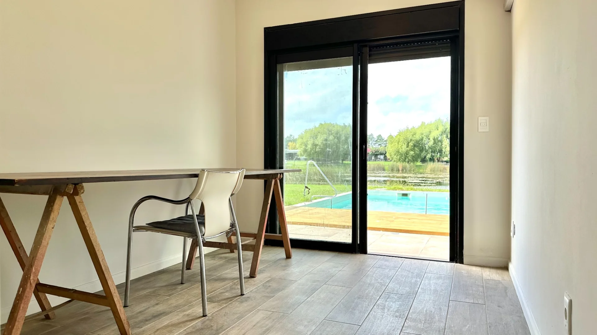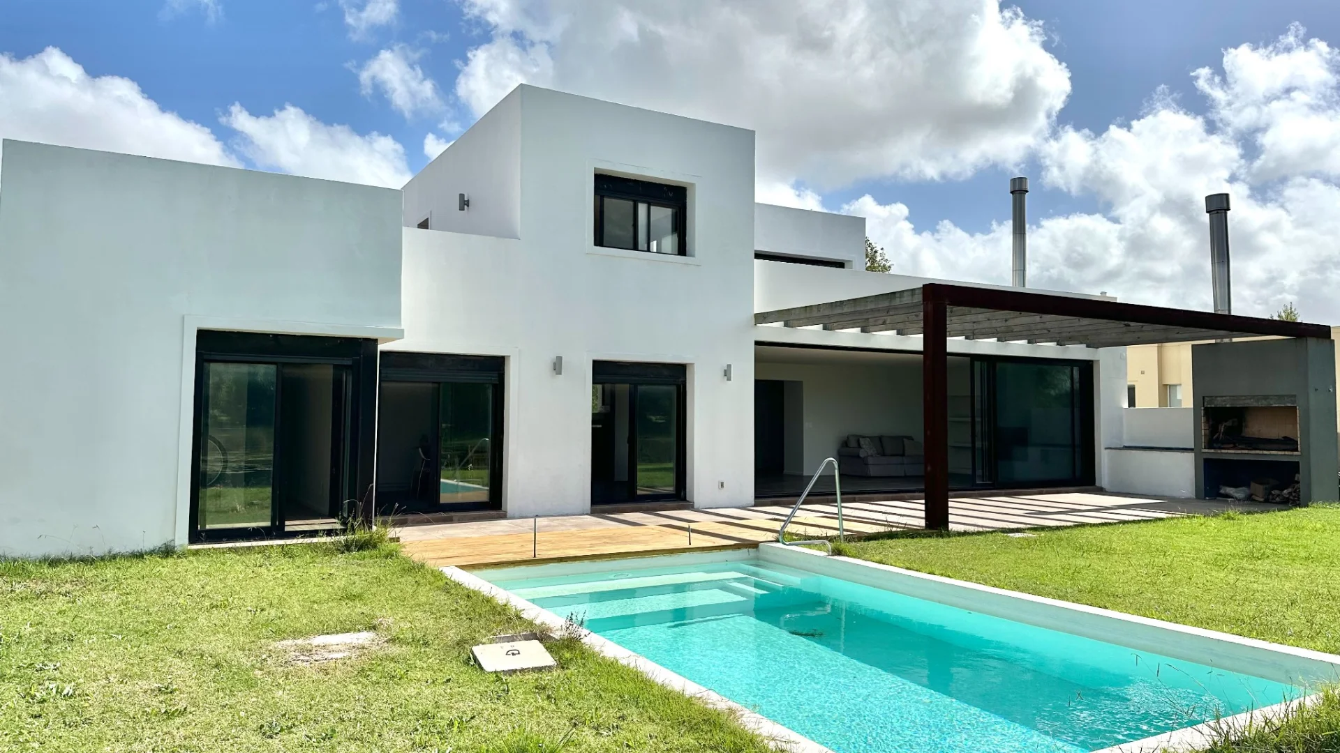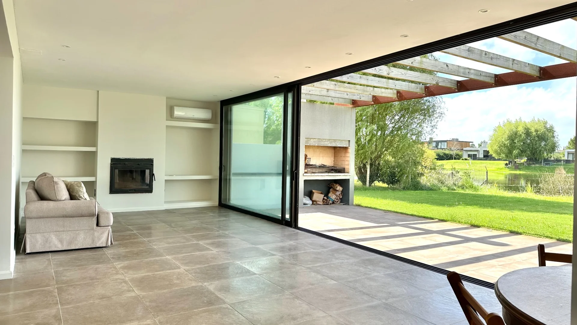 La casa se desarrolla sobre un terreno de 1084 m2, con una muy buena orientación y fondo al lago.