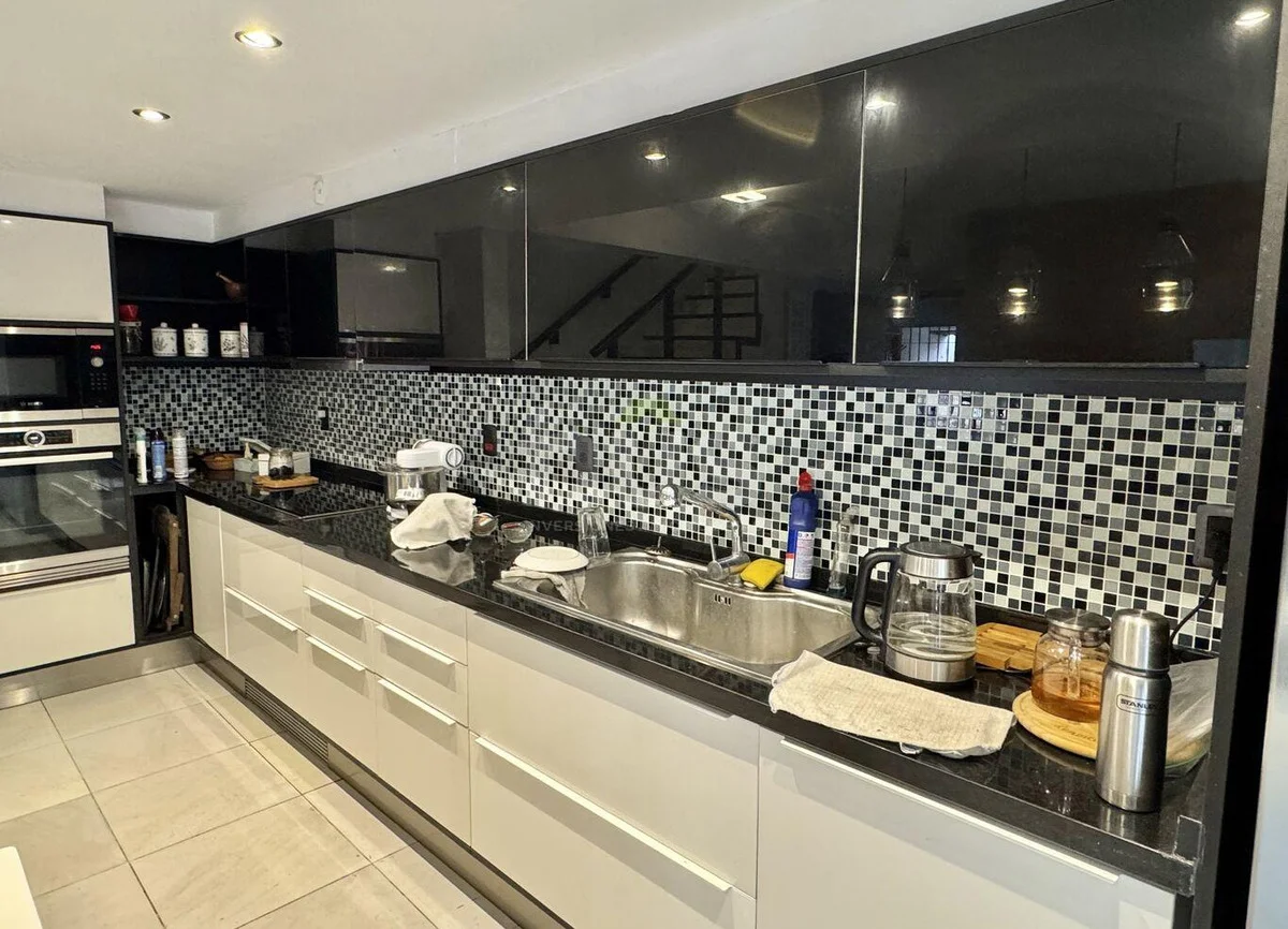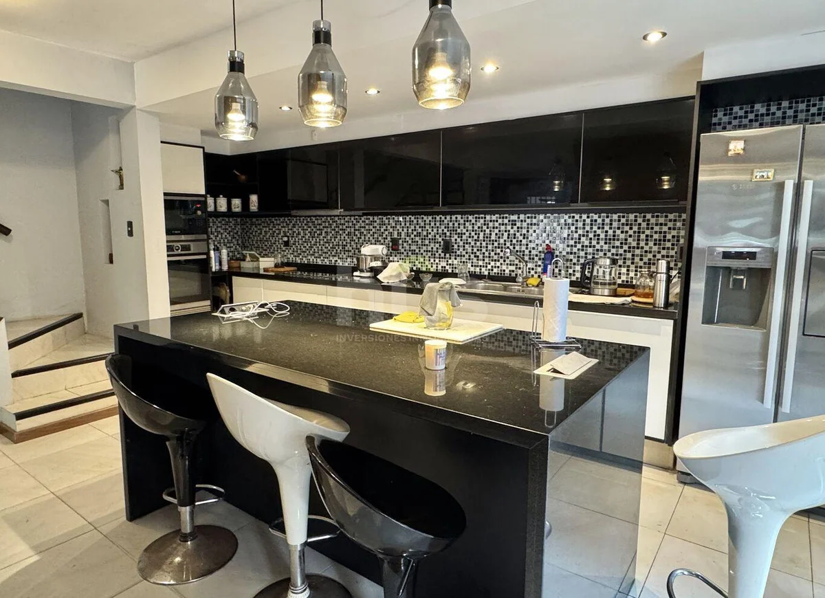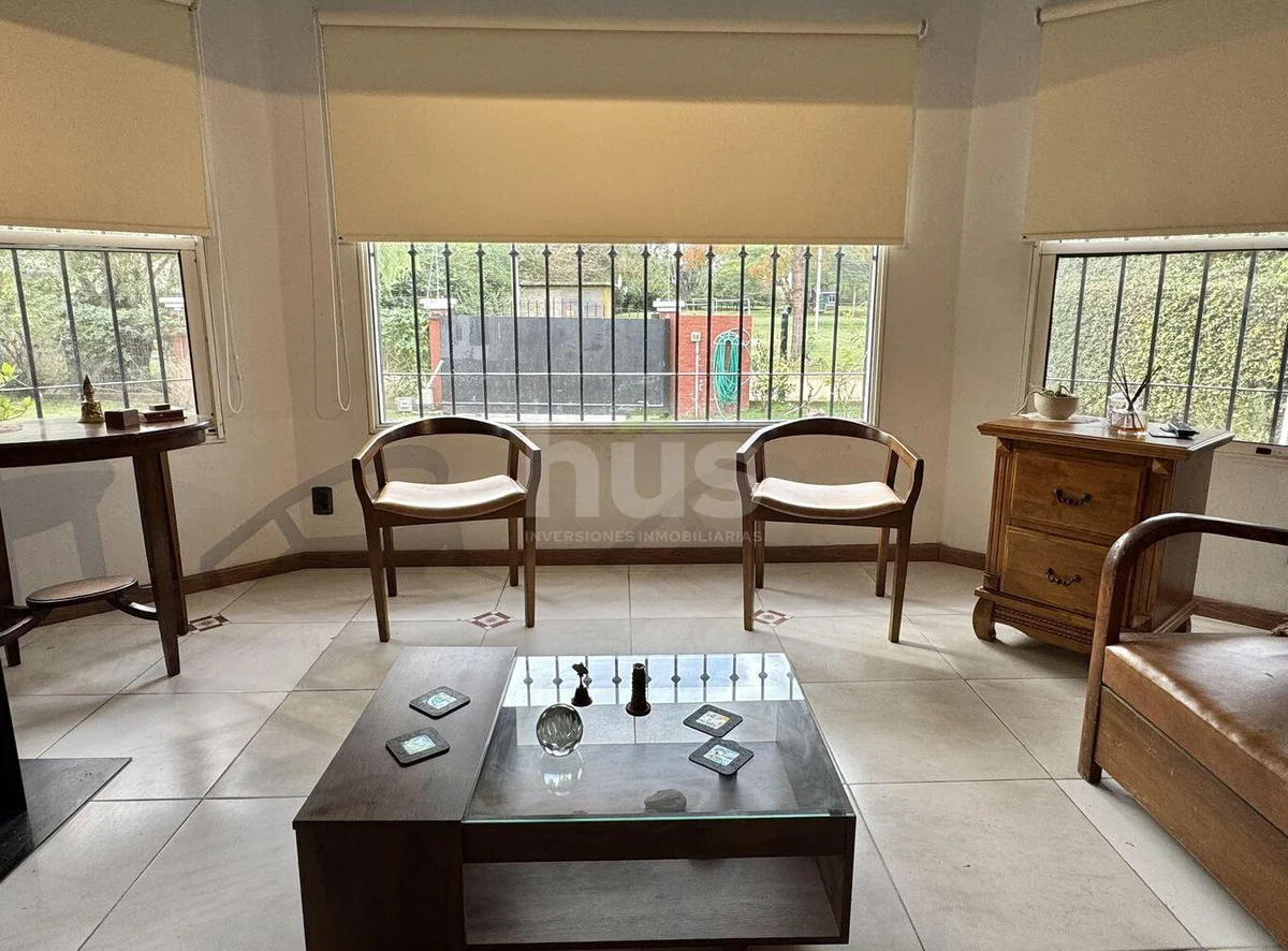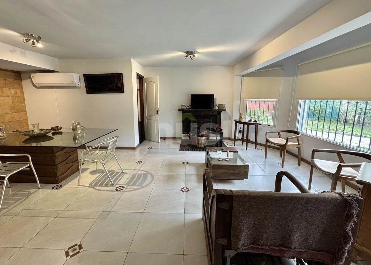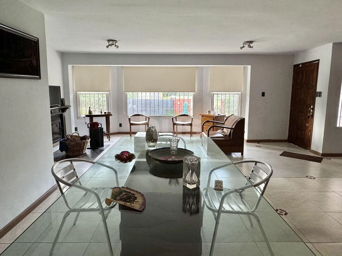 Living-comedor con ventanales al frente, baño social, amplia cocina con isla totalmente reciclada.