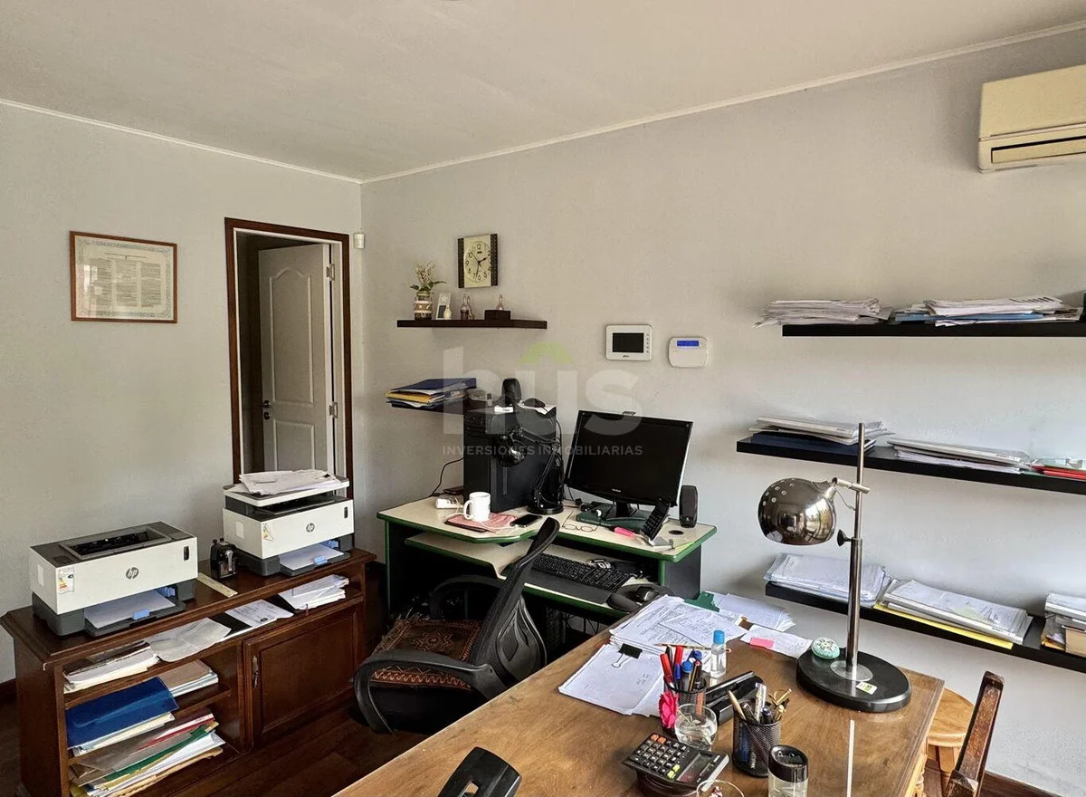 Cochera cerrada que se conecta a escritorio, con área de lavadero y baño completo.