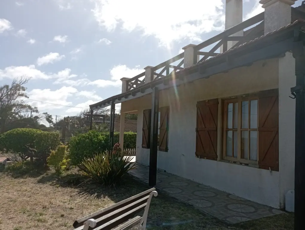 Vendo casa en balneario argentino, Exelente ubicación en la ZONA FRENTE AL MAR, la casa principal cuenta con 3 dormitorios uno en suite, 2 baños, living comedor con estufa a leña y aire acondicionado, cocina integrada, totalmente amoblada lista para habitar, al fondo cuenta con un mono ambiente con Kitchent y baño, barbacoa semi cerrada con parrillero y horno a leña, lavadero y alacena, 2 cocheras una para 2 veh, cerrada y otra semi abierta exterior, pozo de agua con equipo hidro con bomba y presscontrol, ENERGÍA TRIFACICA menor consumo, perímetro del terreno cercado con portones de buena madera, patio al fondo y frente de la casa con vegetación cuidada.