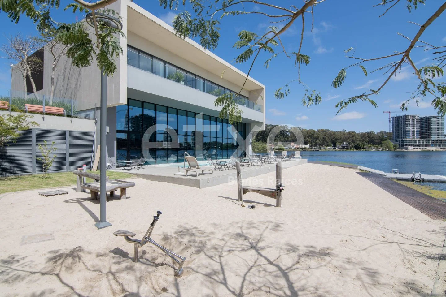 Amenities: Aparatos al aire libre, Gym equipado con aparatos de última generación, Circuito Aeróbico, kayaks, lagos, muelle, Tablas de Paddle Surf, parque, solarium y playa privada, barbacoas, sala de eventos, salon gourmet, espacio de cowork, livings en común, sala de reuniones, estacion de juegos, playroom, estacionamiento para visitas, piscina exterior y piscina interior, sauna, vestuarios, Infraestructura para servicio de Housekeeping opcional, sala de vigilancia y monitoreo.