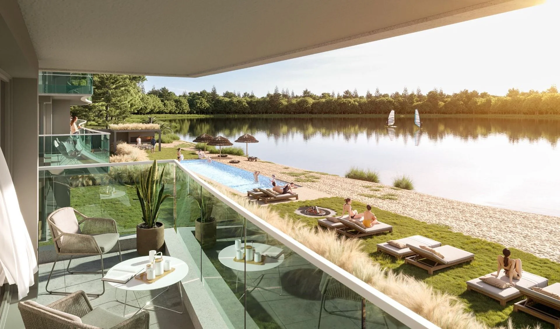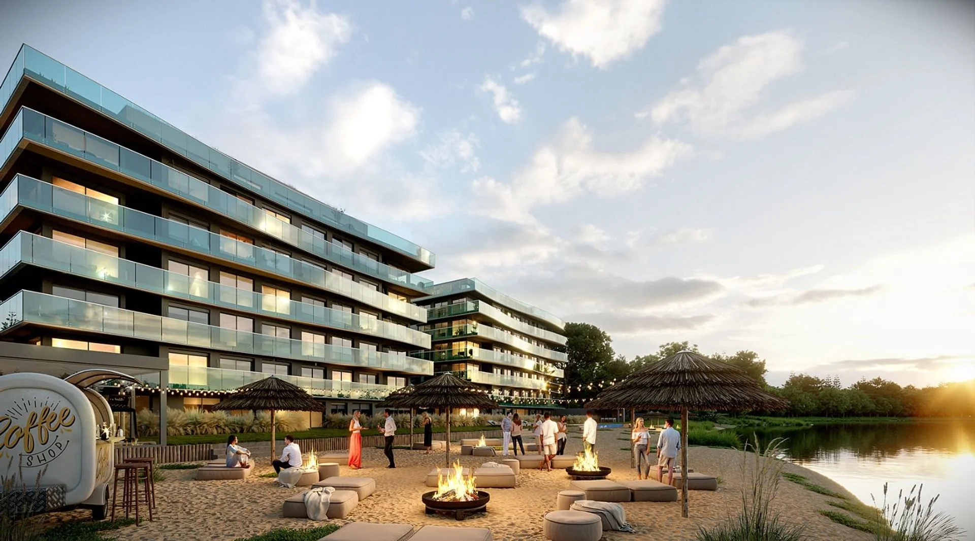 Cuenta con cowork, laundry, Terrazas 360, Gimnasio, 72 mts de playa frente al lago, piscina de borde infinito, cargador EV, skybay , rooftop y barbacoa.