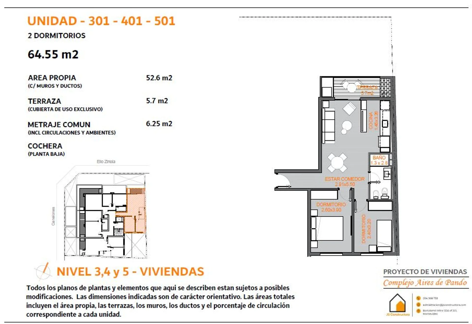 El complejo Aires de Pando comienza sus obras el próximo año 2026, tiene fecha prevista de entrega a fines del año 2027, es una torre con 2 locales comerciales y 20 apartamentos de uno, dos y tres dormitorios, ascensor, cocheras en planta baja y subsuelo y barbacoa con solarium en el roof top.