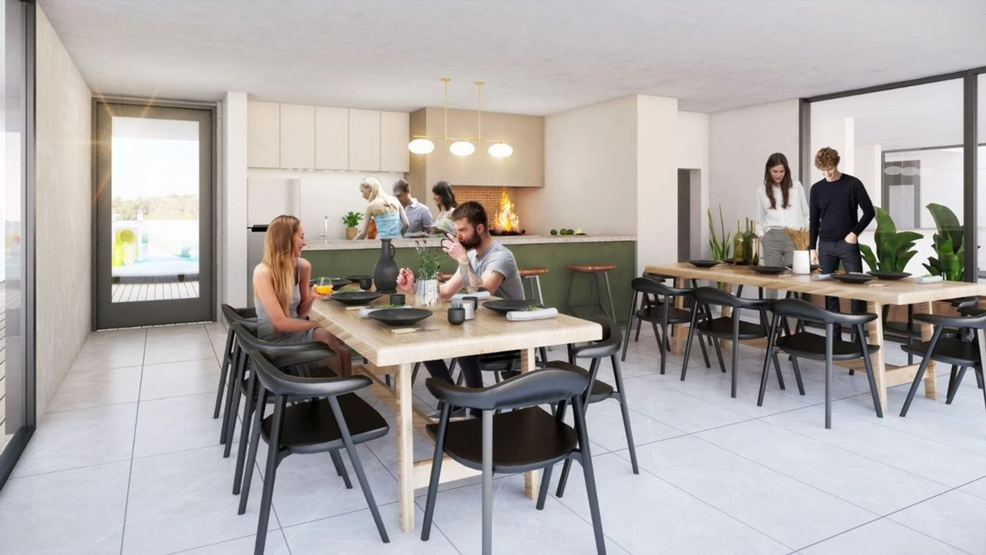 Barbacoa (SUM) con parrillero y espacio exterior de expansión con sector pergolado