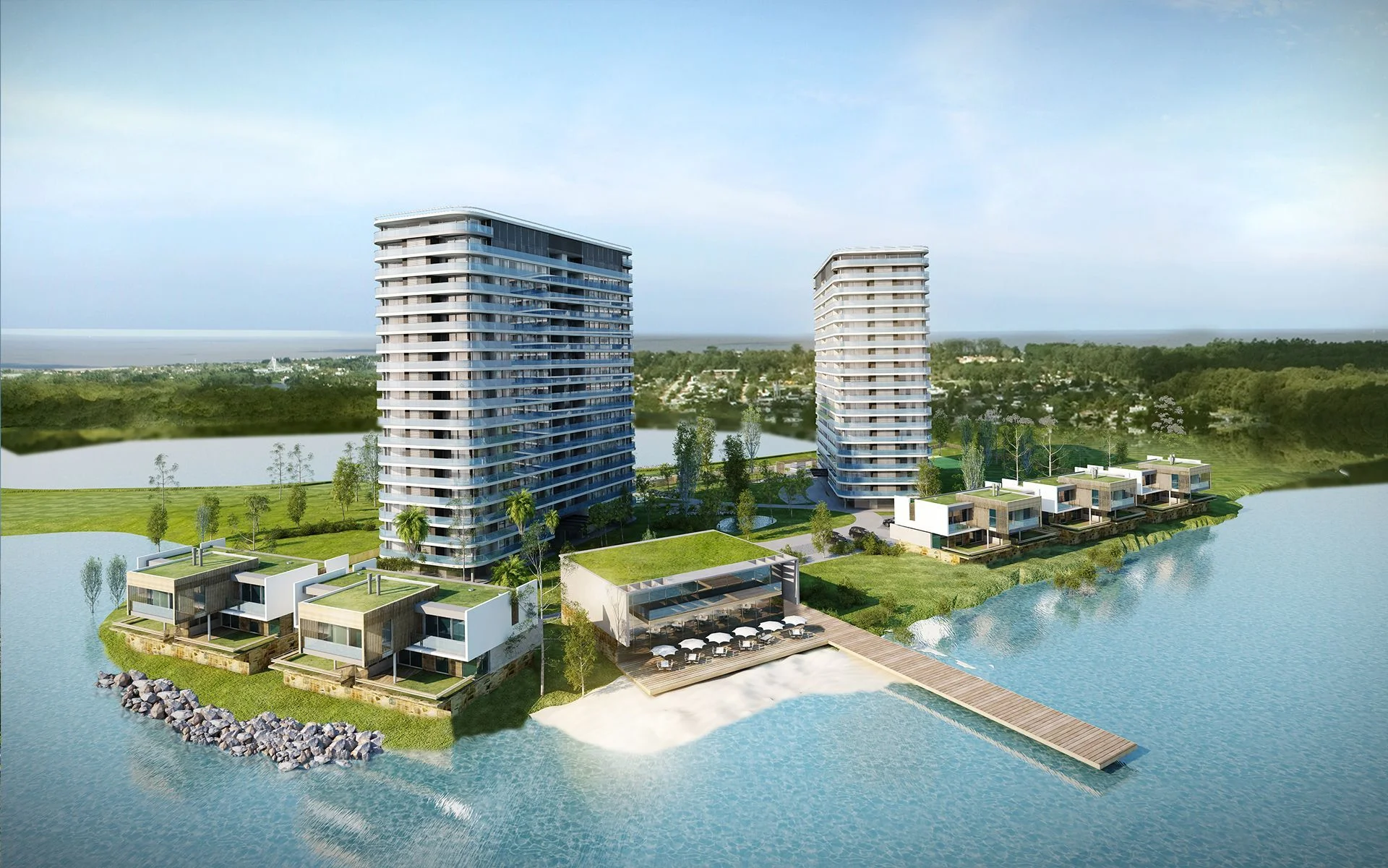 La torre cuenta con parque exclusivo, circuito aeróbico y muelle privado. Cowork y livings comunes equipados y conectados. Gimnasio totalmente equipado, sauna y solarium. Barbacoas y salones gourmet.