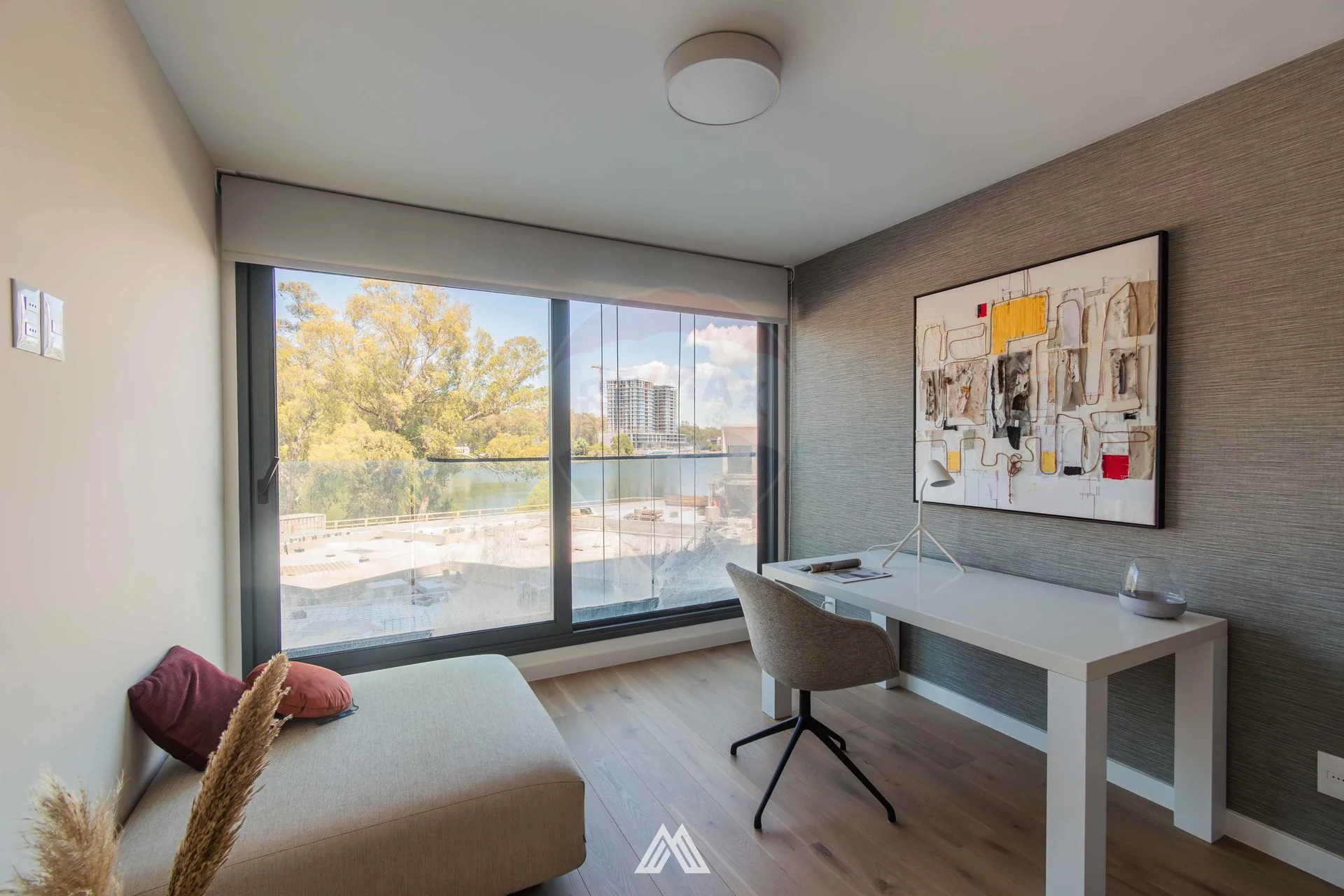 El apartamento cuenta con cocina con placares aéreos y bajo mesada, integrada a living-comedor. Salida a balcón al frente, con vista al lago.
