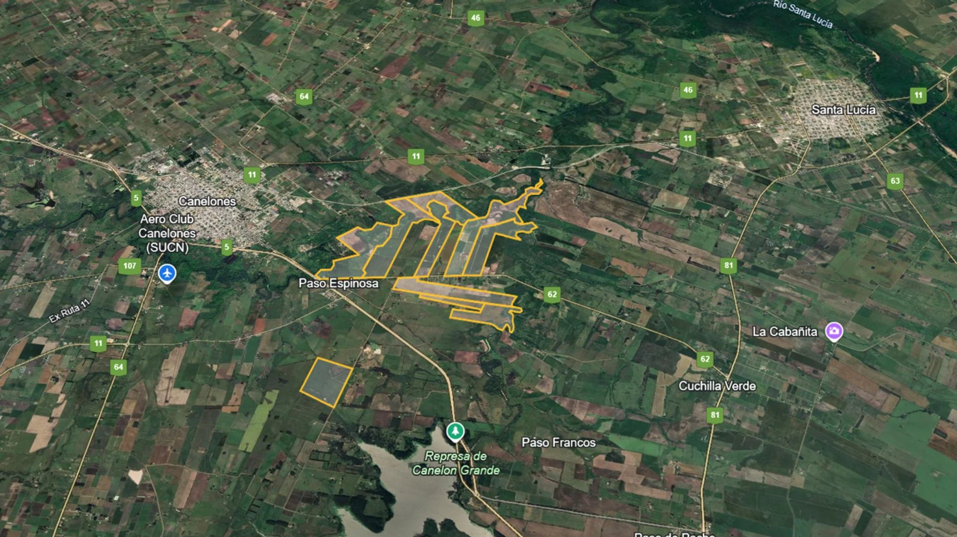 Se trata de 10 padrones, que hacen un total de 530 Hás, ubicados en Canelones km 50.400 de la Ruta 62, frente a Paso Espinosa, excepto uno de ellos ubicado sobre Camino Pacheco a 2.100m de la Ruta 62. Tienen distintos índices de CONEAT (31, 79 y 131).