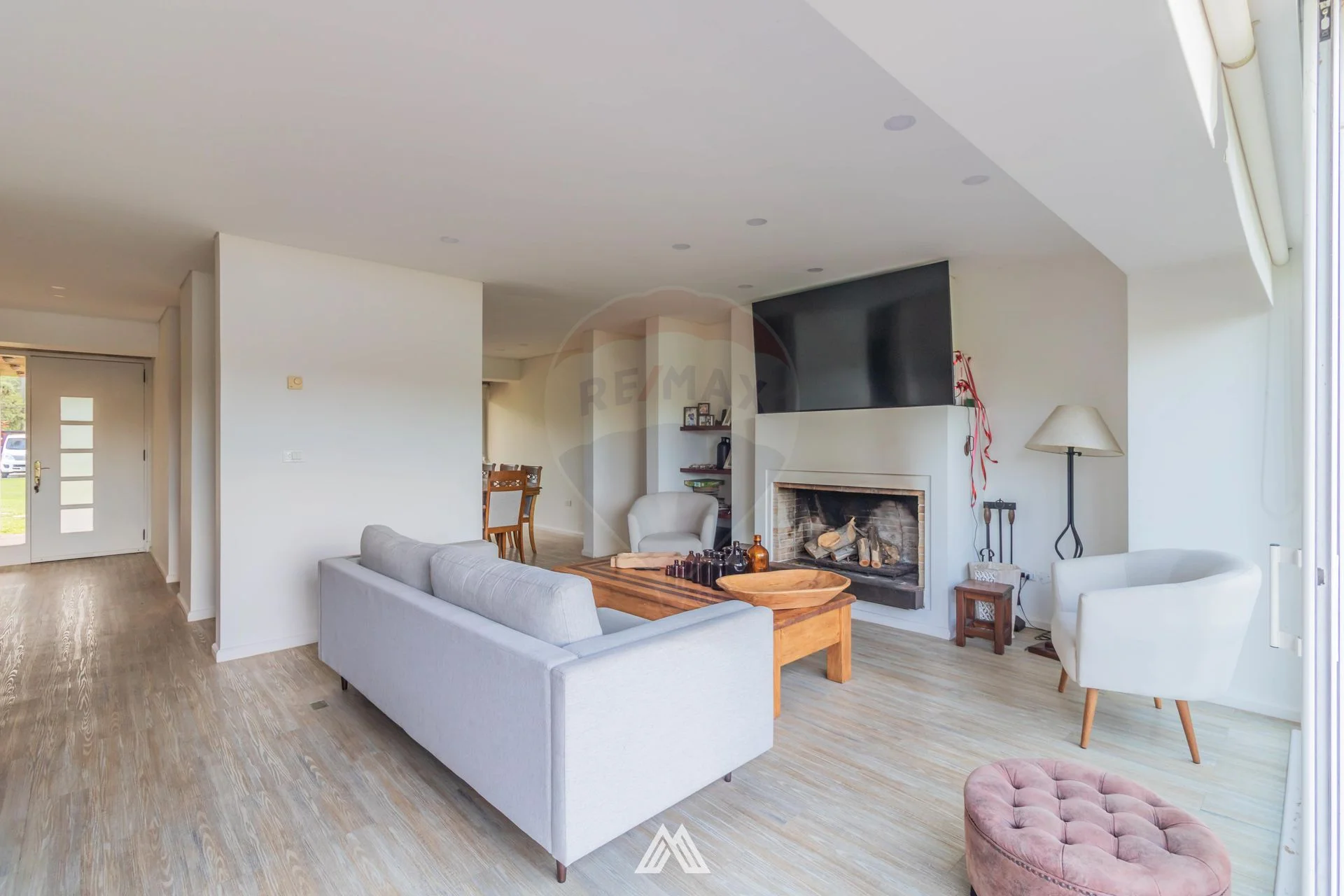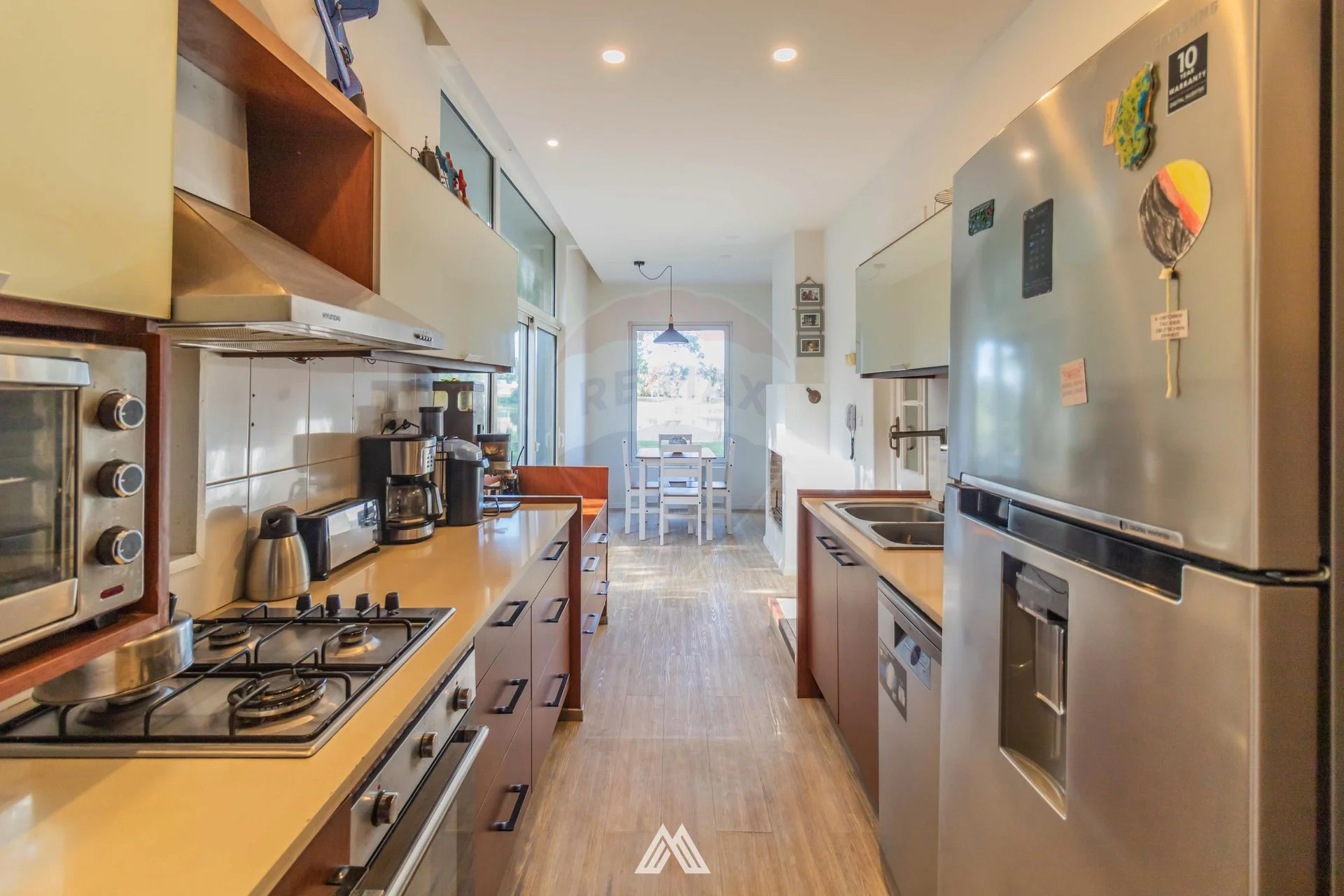 La construcción abarca 269 m² y ofrece ambientes amplios, confortables y bien definidos. Al ingresar, un living con estufa a leña se abre hacia un jardín con costa al lago, ideal para contemplar el paisaje desde el deck o la piscina climatizada. El área exterior se completa con un parrillero techado que funciona como verdadero espacio social.