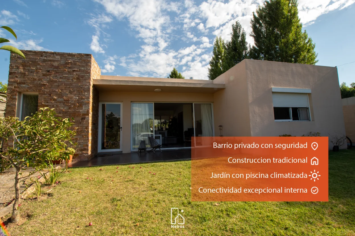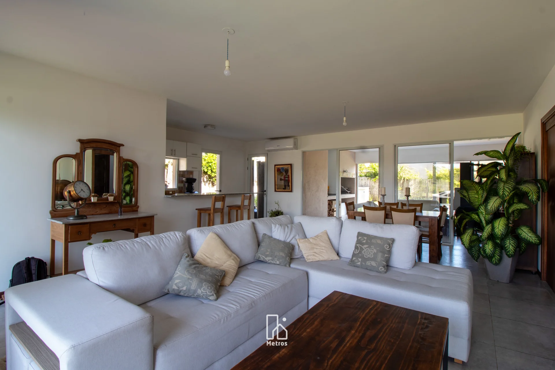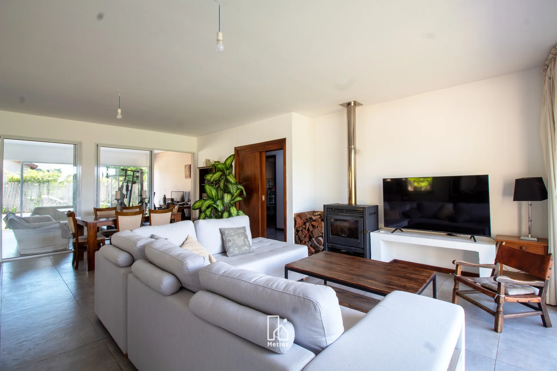 Living comedor con estufa de alto rendimiento • Cocina semi definida (posibilidad de integrar o cerrar) • 3 dormitorios (principal en suite) • 2 baños completos • Amplio jardín con sol de la tarde • Piscina climatizada con clorador de sal • Barbacoa con parrillero cerrado • Lavadero exterior