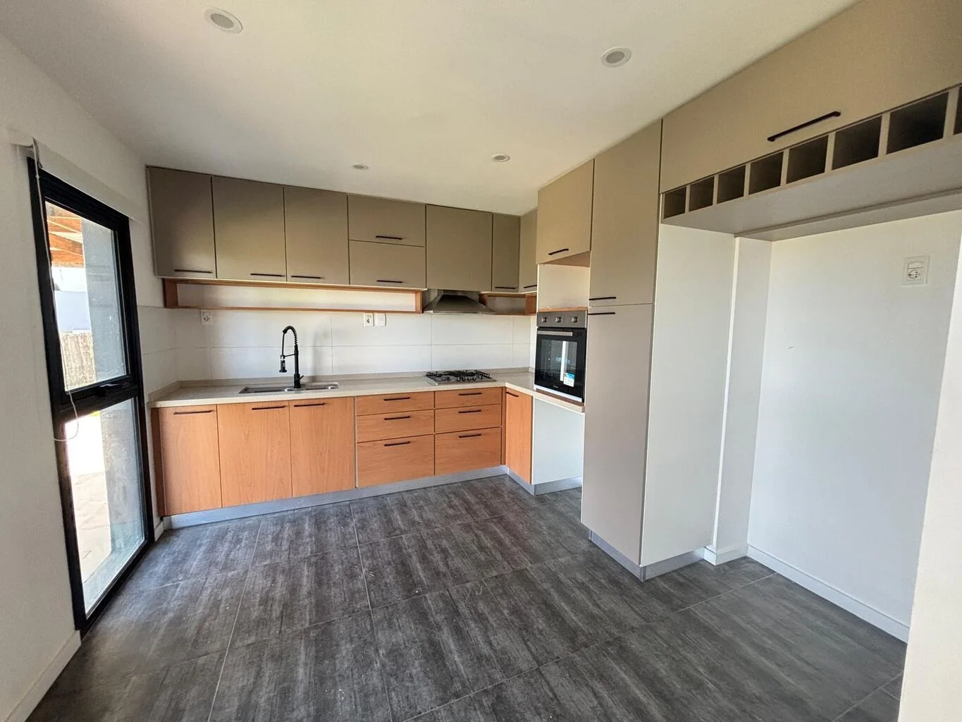 Cocina definida con salida al contrafrente, conectada al parrillero techado.
