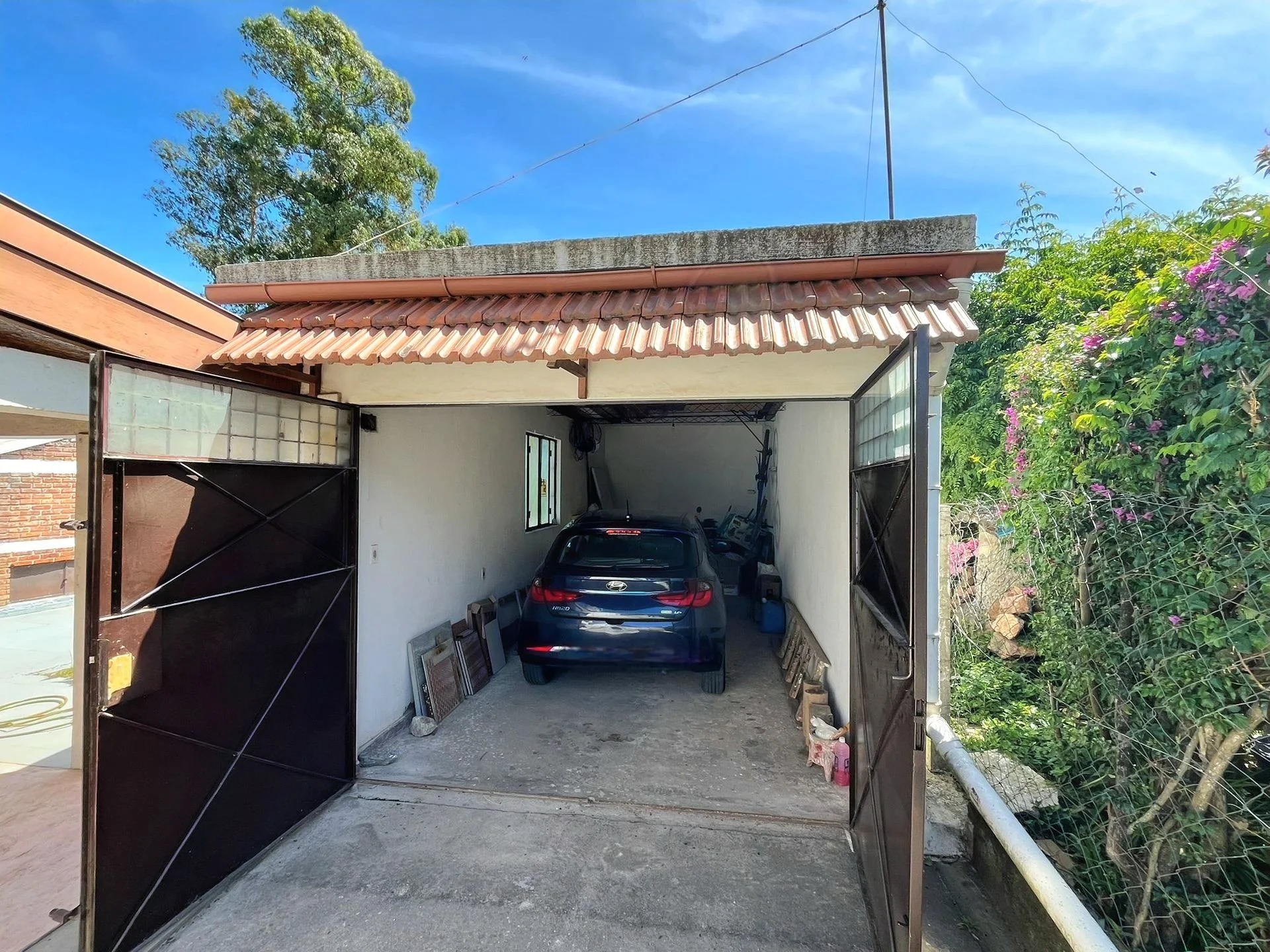 Cuenta con un acceso vehicular pavimentado que conduce a cochera techada con gran capacidad para camioneta grande por su destacada altura o dos autos pequeños