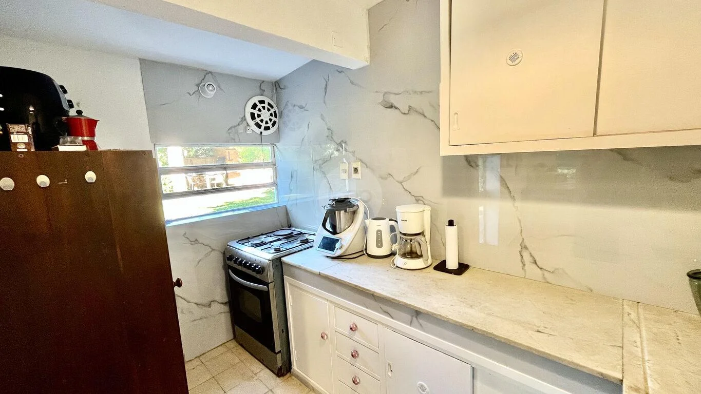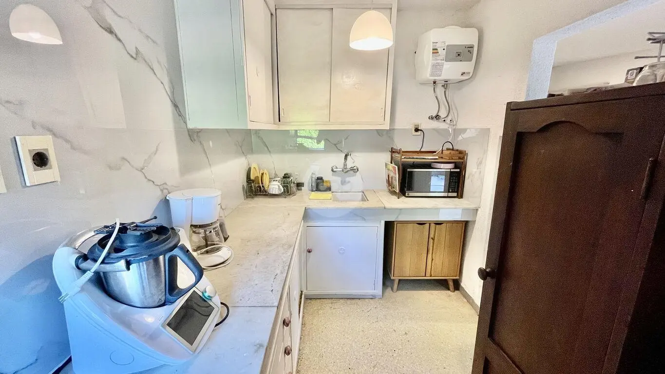 - Cocina definida con muebles aéreos, bajo mesada y extractor