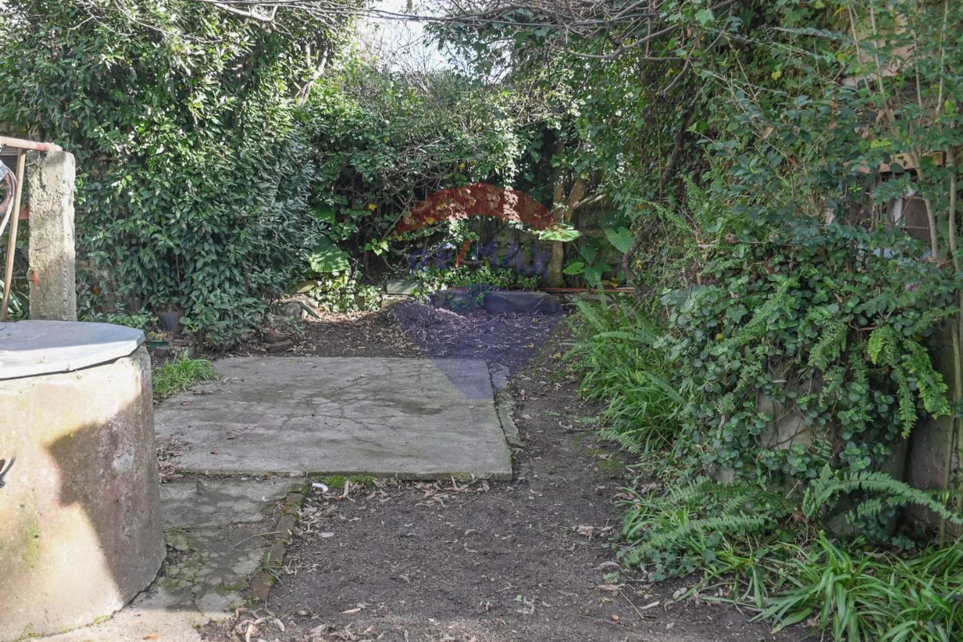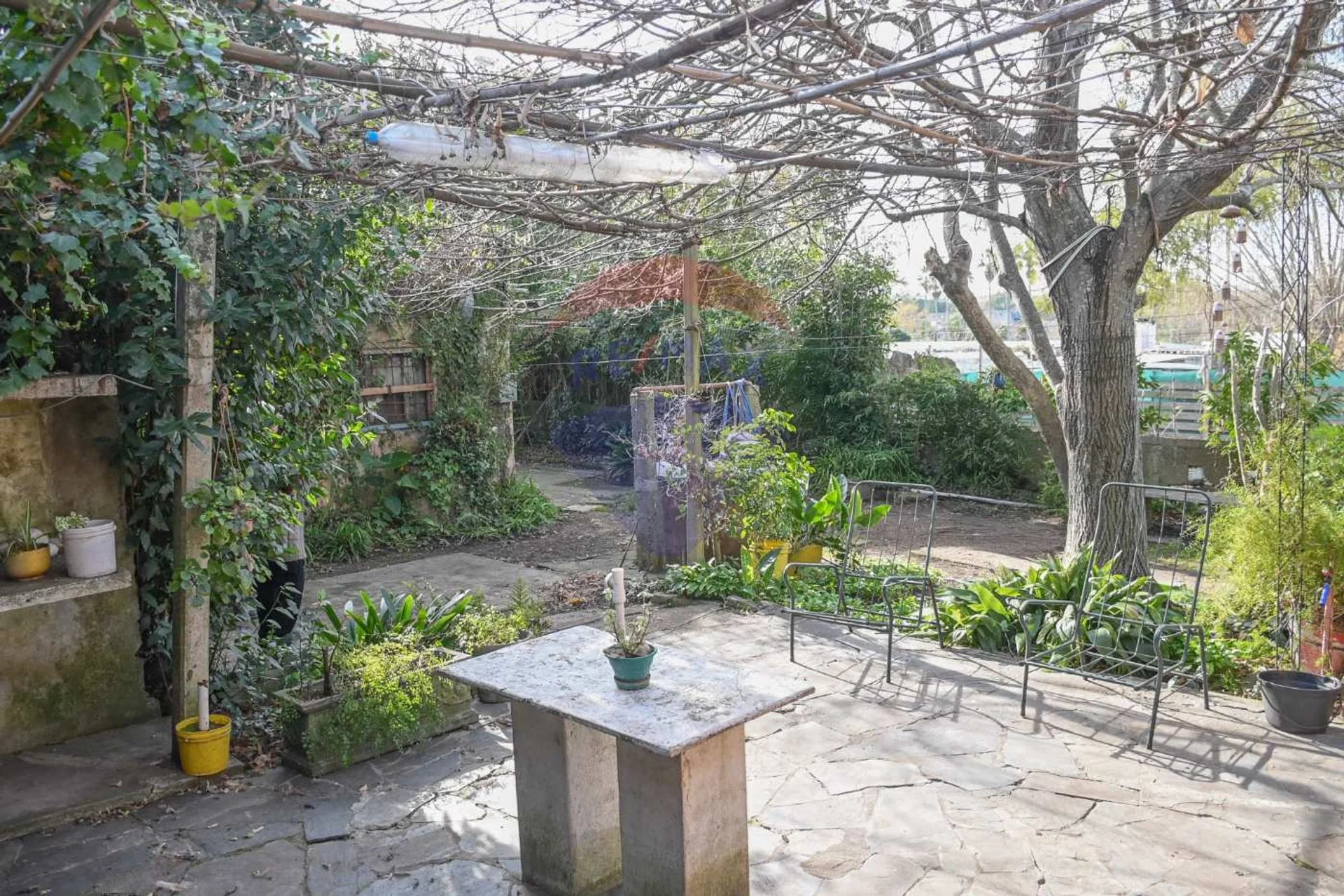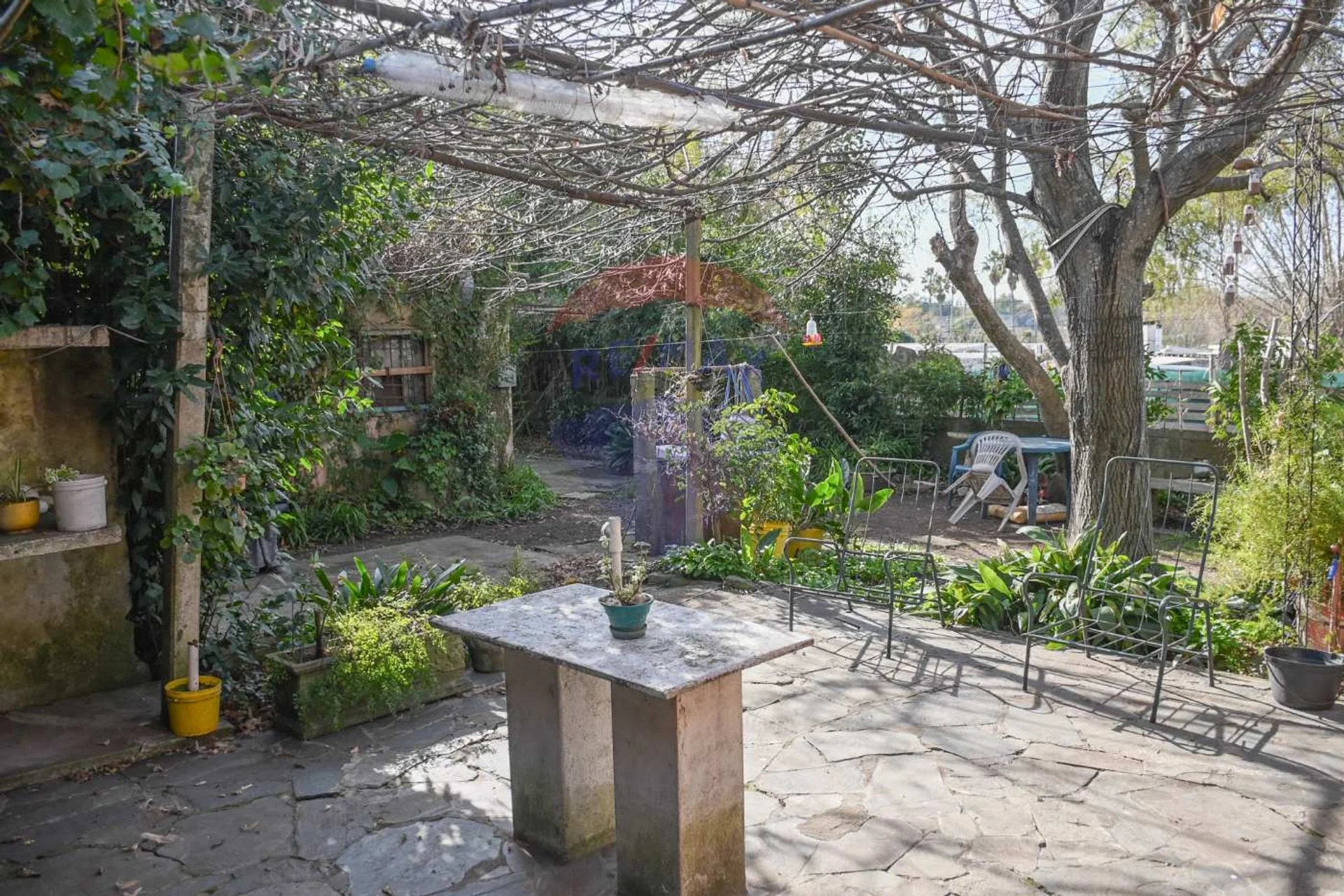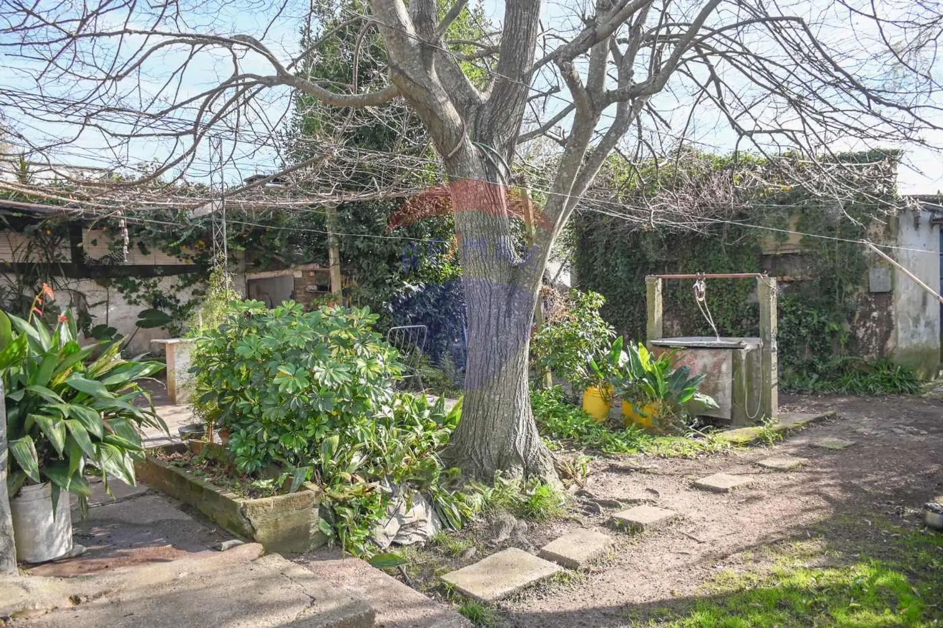 Amplio fondo con espacio verde, parrillero y pozo de agua.