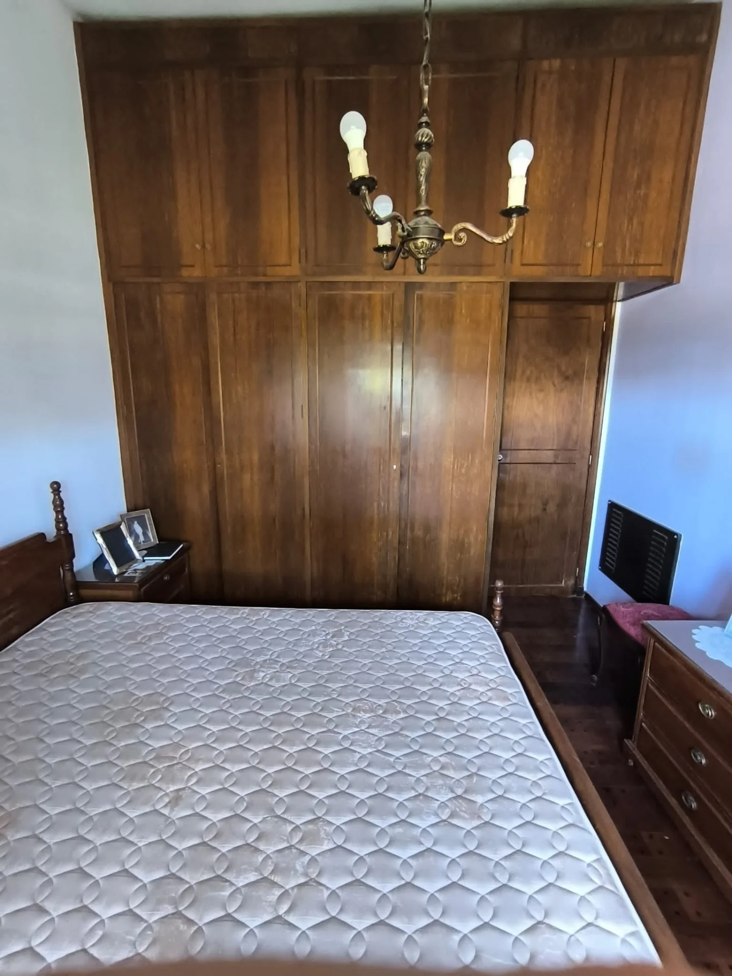 La casa principal cuenta con un dormitorio amplio con piso de parquet, persiana eléctrica y placar. El living comedor se integra a la estancia mediante una estufa a leña, aire acondicionado y persianas eléctricas. La cocina comedor está equipada con placares aéreos y bajo mesada. El baño principal incluye bañera y piso de cerámica.