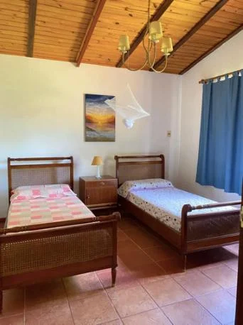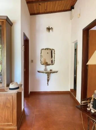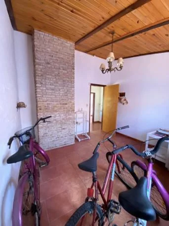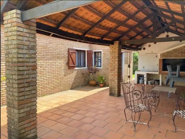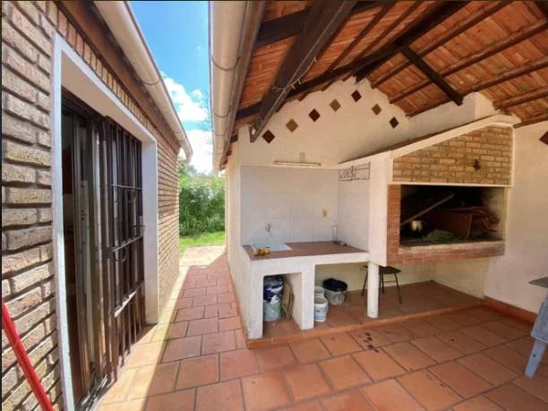 La casa cuenta con 90 m² construidos distribuidos en 8 ambientes, incluyendo 3 acogedores dormitorios, 2 baños completos y una cocina con buena carpintería. Las aberturas de aluminio marrón, equipadas con rejas y postigones de madera, aportan seguridad y estilo. En la parte posterior de la barbacoa, se encuentra un cuarto dormitorio que puede ser utilizado como habitación de servicio o depósito, con baño completo y conexiones para calefón y lavadora. La casa también ofrece comodidades modernas como aire acondicionado, internet, y un espacioso living-comedor con chimenea, ideal para reuniones familiares.