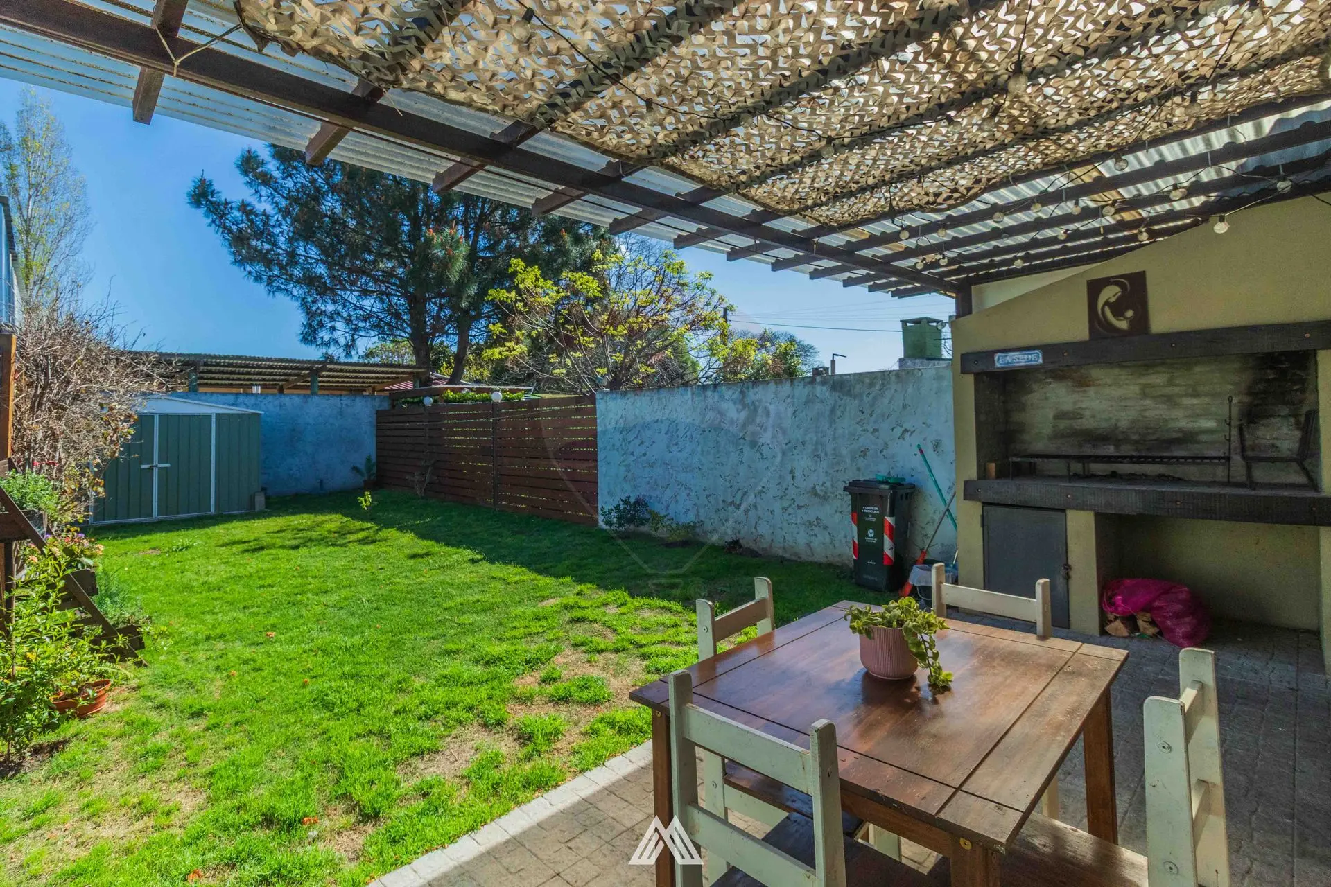 La casa cuenta con 2 dormitorios, living comedor, cocina amplia, baño y un gran jardín tanto al frente como al fondo de la casa. Además cuenta con parrillero techado e instalación para lavarropas.