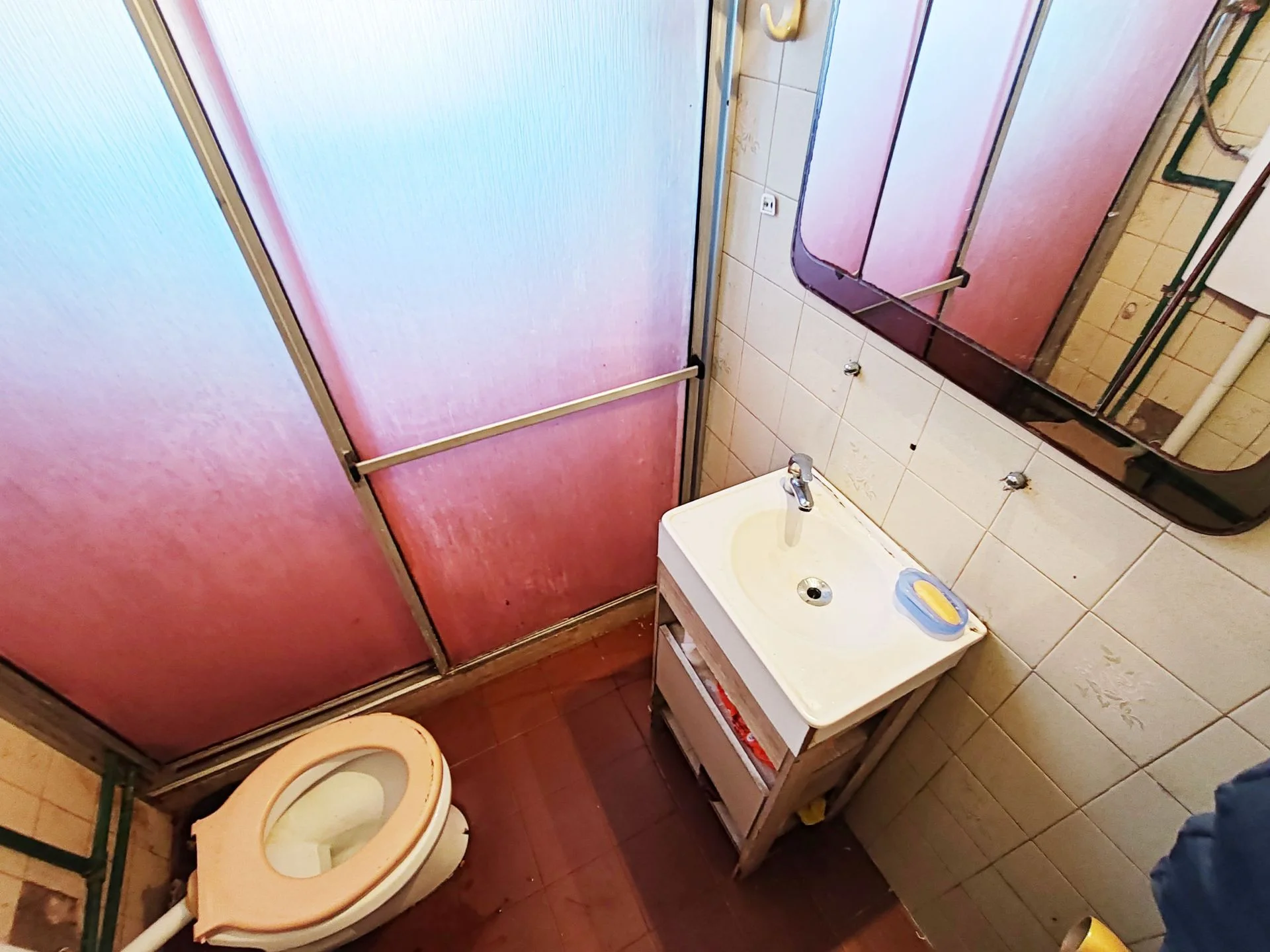 Al fondo encontramos un apartamento con baño en estado ruinoso.