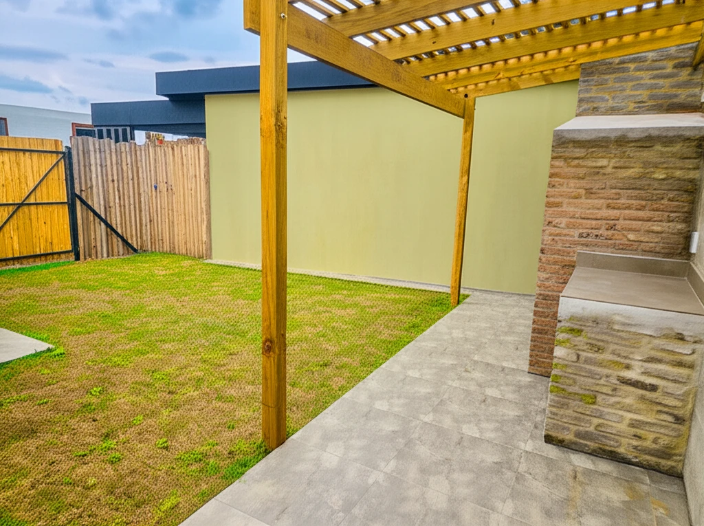 Cada detalle ha sido cuidadosamente seleccionado, desde las elegantes aberturas de aluminio que garantizan luminosidad y eficiencia, hasta la moderna cocina equipada con placares de alta calidad y una barra con mesada de granito, ideal para desayunos rápidos o reuniones informales. La comodidad se extiende con una despensa integrada y un lavadero dentro de la casa, facilitando las tareas diarias.