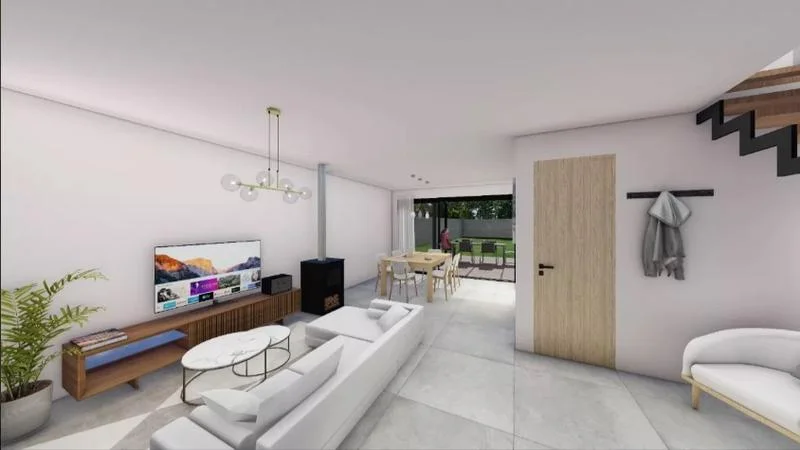 PLANTA BAJA: Living comedor con cocina integrada, la cocina cuenta con muebles aéreos y bajo mesada, baño social con previsión para lavarropas, estufa de alto rendimiento y previsión para conexión de aire acondicionado.