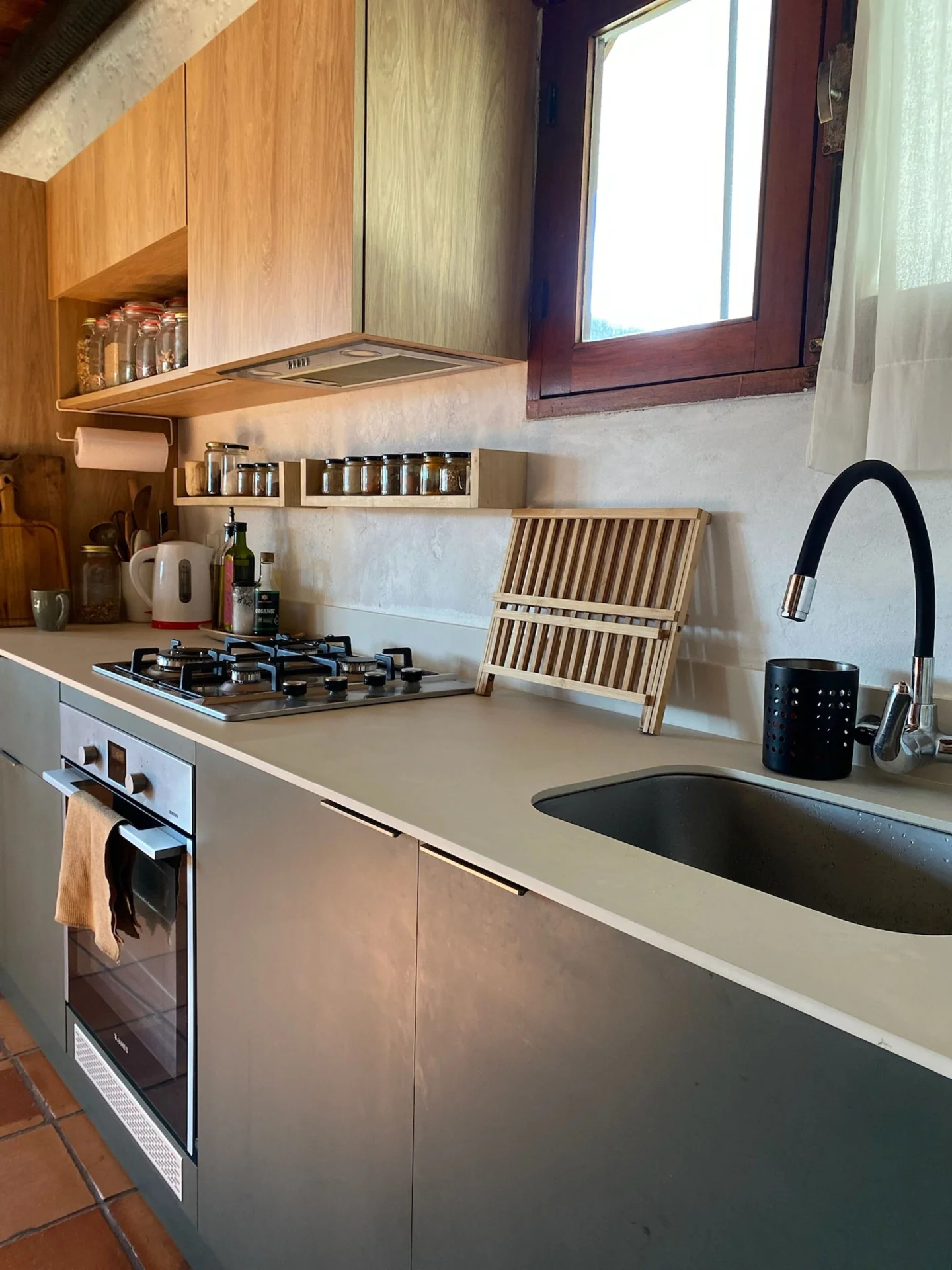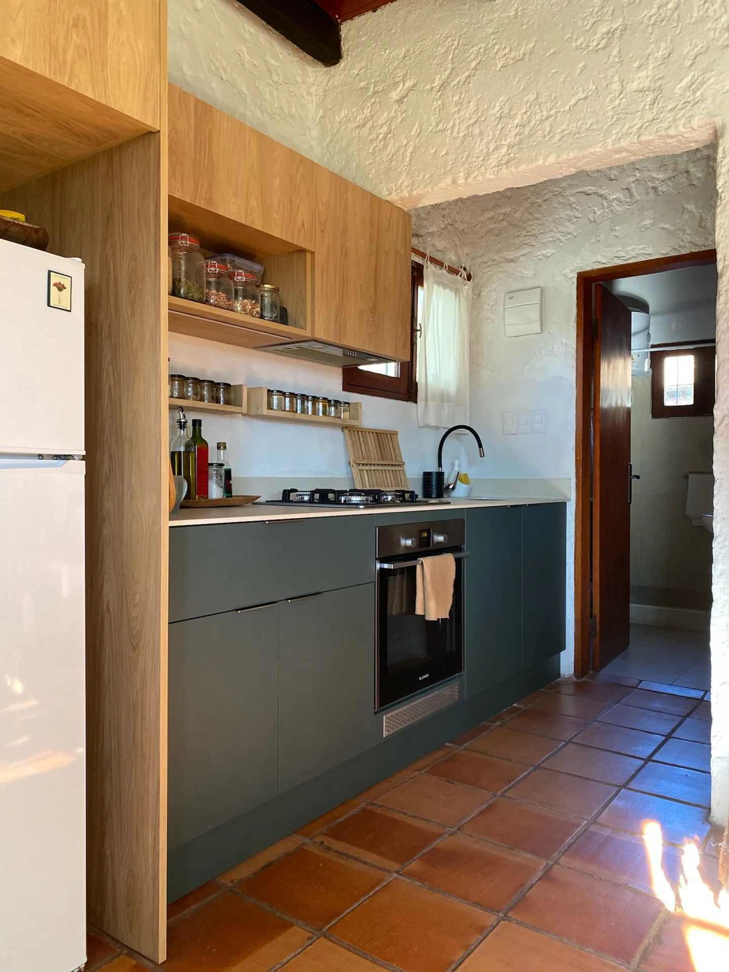 - Cocina/comedor integrado con estufa a leña de alto rendimiento + aire acondicionado.