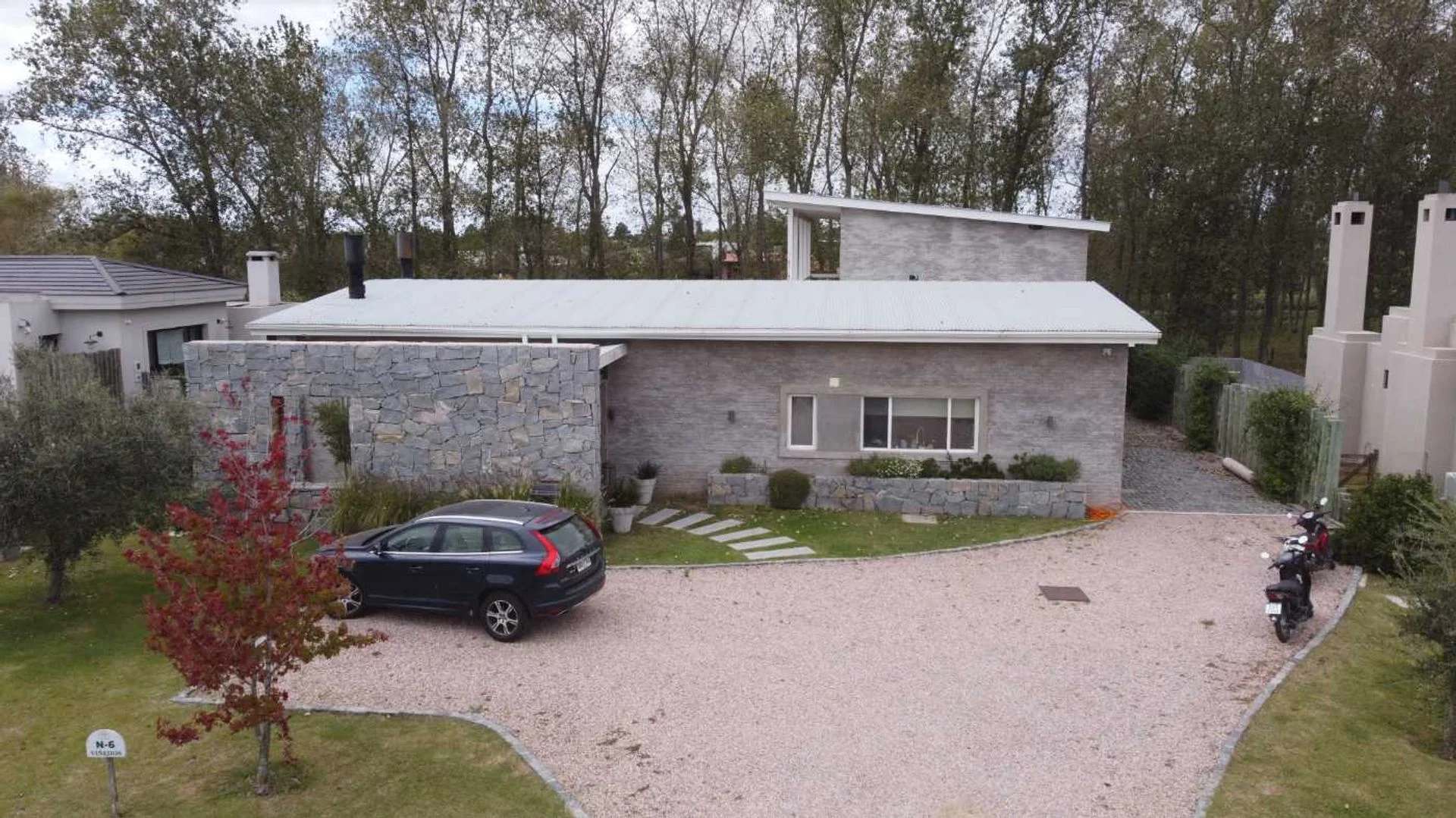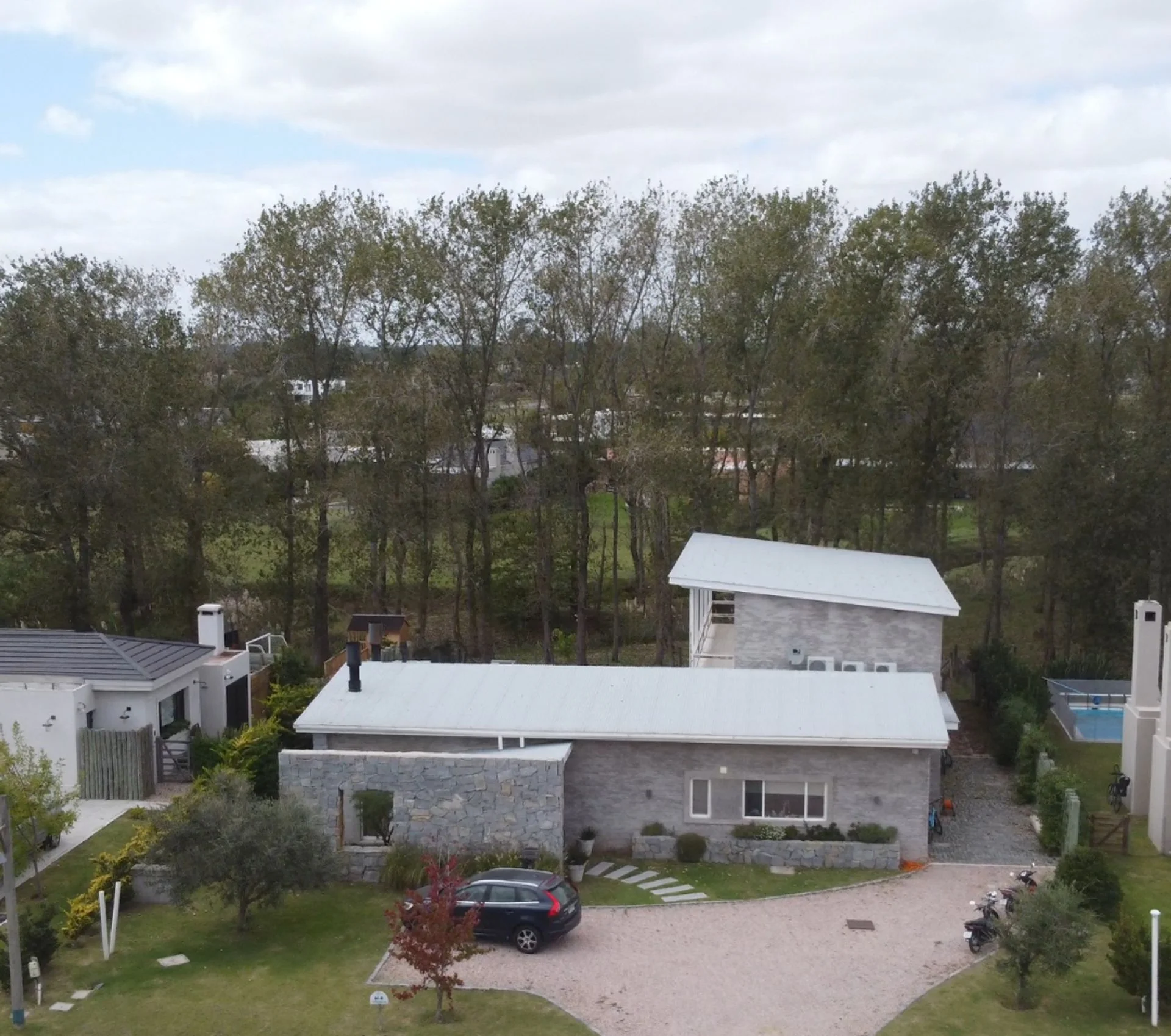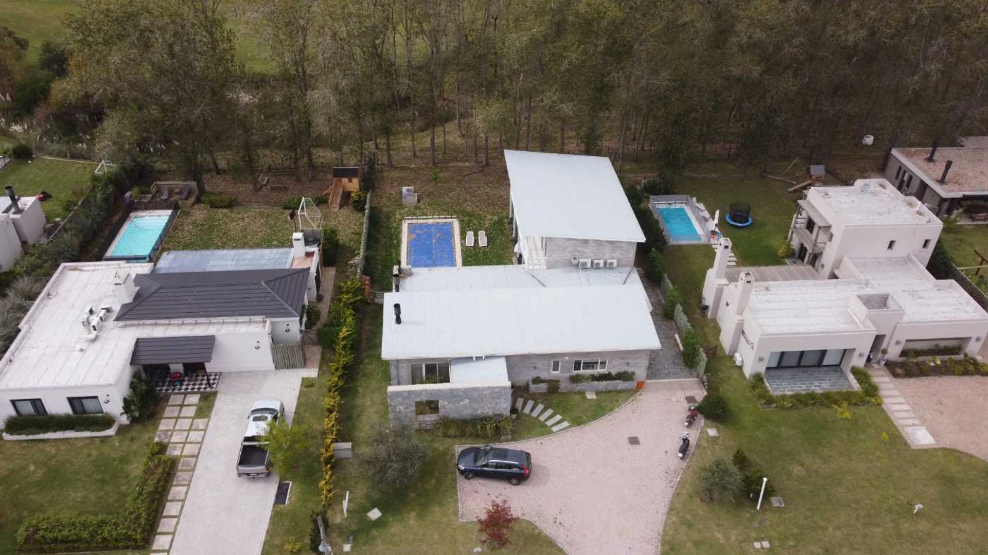 Equipada con losa radiante eléctrica y aire acondicionado en todos los ambientes, la casa garantiza confort térmico durante todo el año. En el exterior, una piscina climatizada con bomba de calor invita a relajarse,