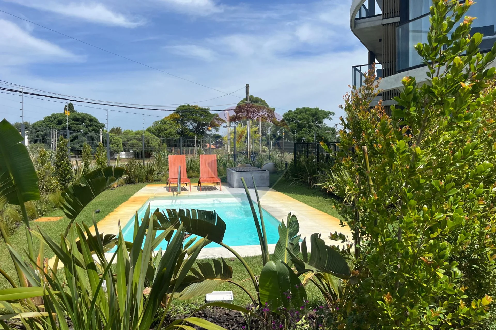 El proyecto se compone de 28 apartamentos, espacio para cocheras y un jardín lineal que incorpora un área de solárium y piscina.