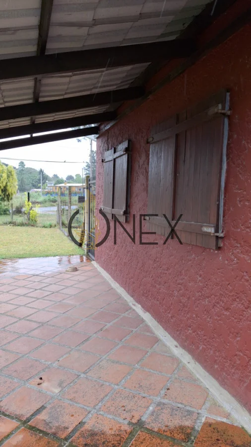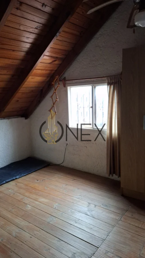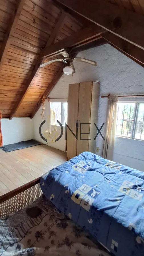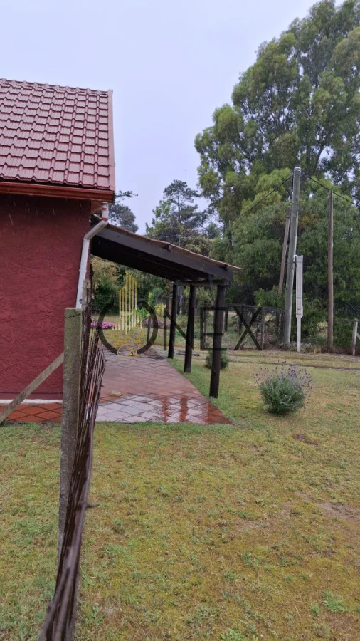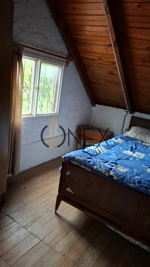 Ubicada sobre un terreno esquina se encuentra esta cabaña que cuenta con 1 dormitorio en planta alta, cocina, baño y Living-comedor en planta baja.