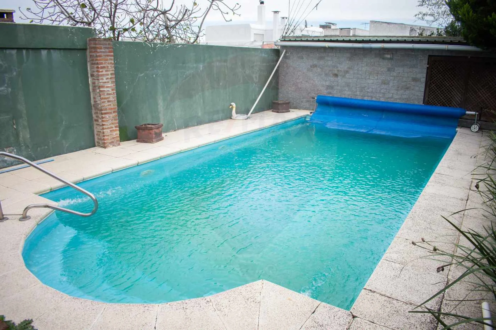 Parque verde con piscina de 10m x 5m calefaccionada, super privada; riego automático con pozo de 72mts. de profundidad.