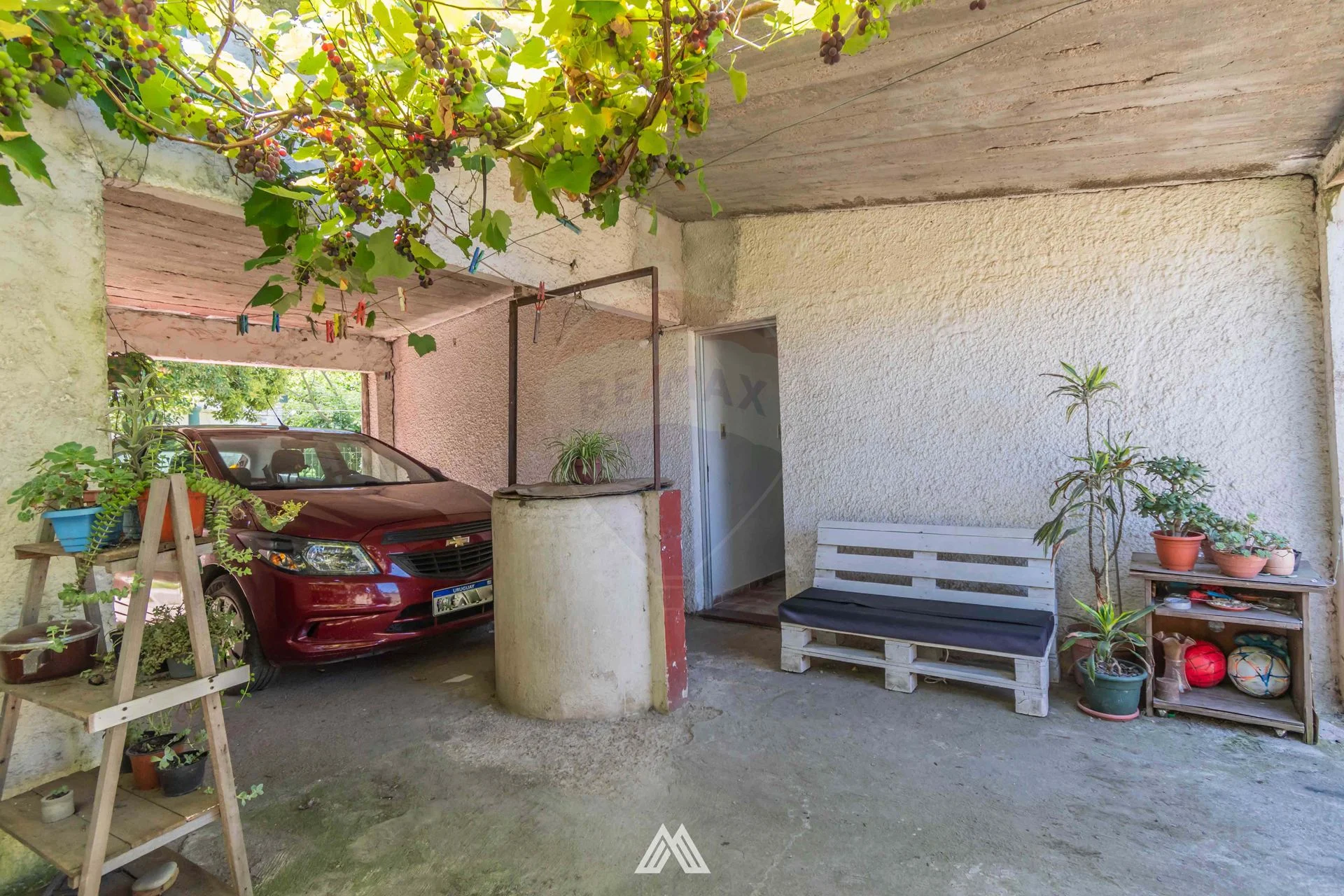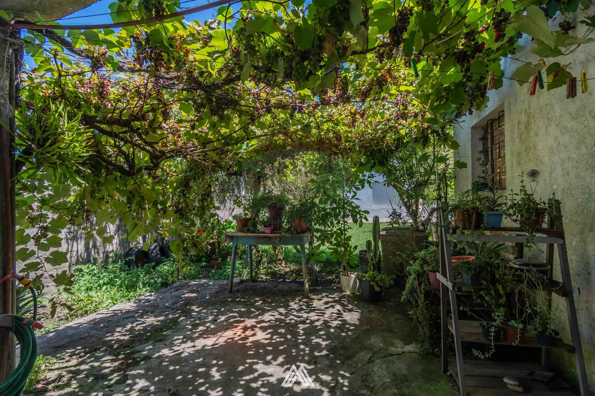 En el fondo, el patio con parral brinda un espacio ideal para disfrutar al aire libre, acompañado de un galpón con conexión para lavarropas. El acceso vehicular es compartido con la unidad 002, permitiendo estacionamiento entre el galpón y la casa.