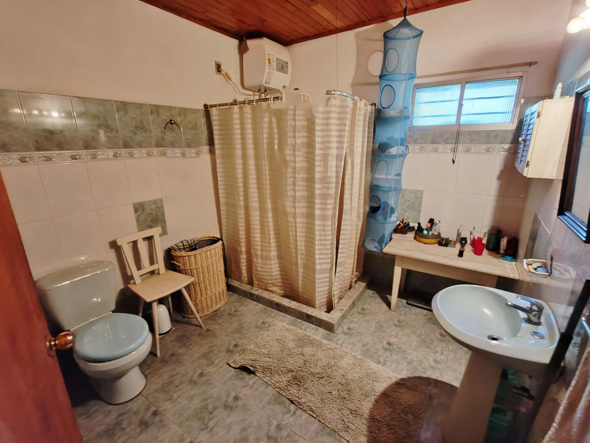 La casa es de sólida construcción de 137 m2 de 3 dormitorios de 4m x 4m, 2 baños y 1 dormitorio de servicio con cocina integrada al living comedor (12,5 x 5m) con gran estufa a leña con salida a terraza semi cubierta (7x3,5m).