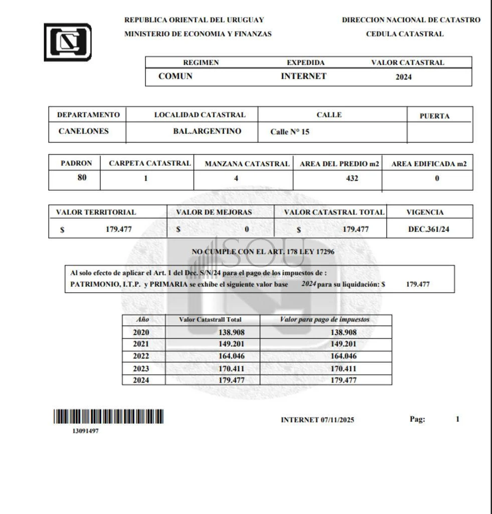 Excelente oportunidad en Balneario Argentino. Terreno de 432 m², amplio y con buen nivel de terreno, ideal para construir tu casa de descanso o un proyecto de inversión.