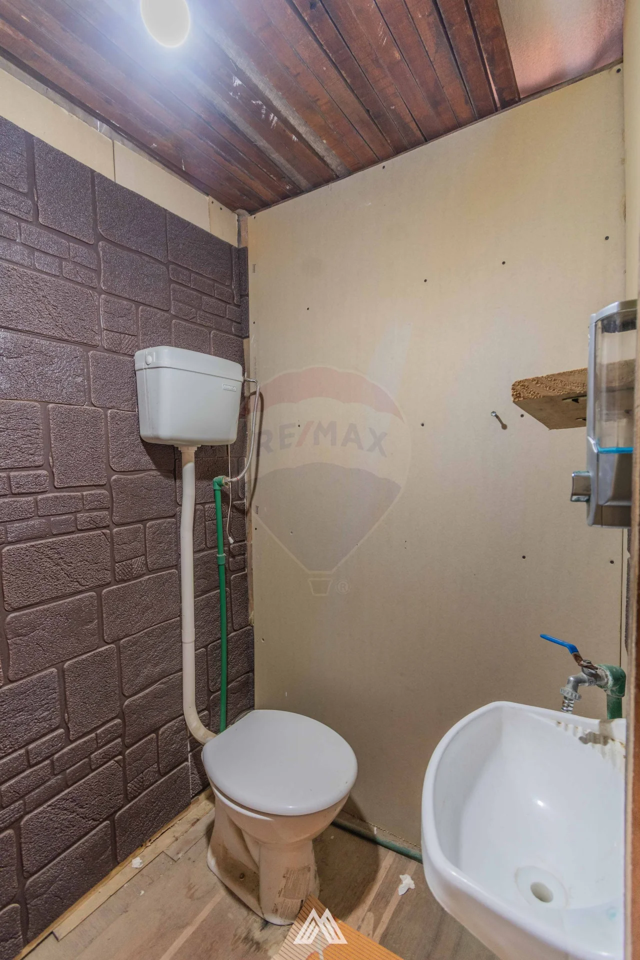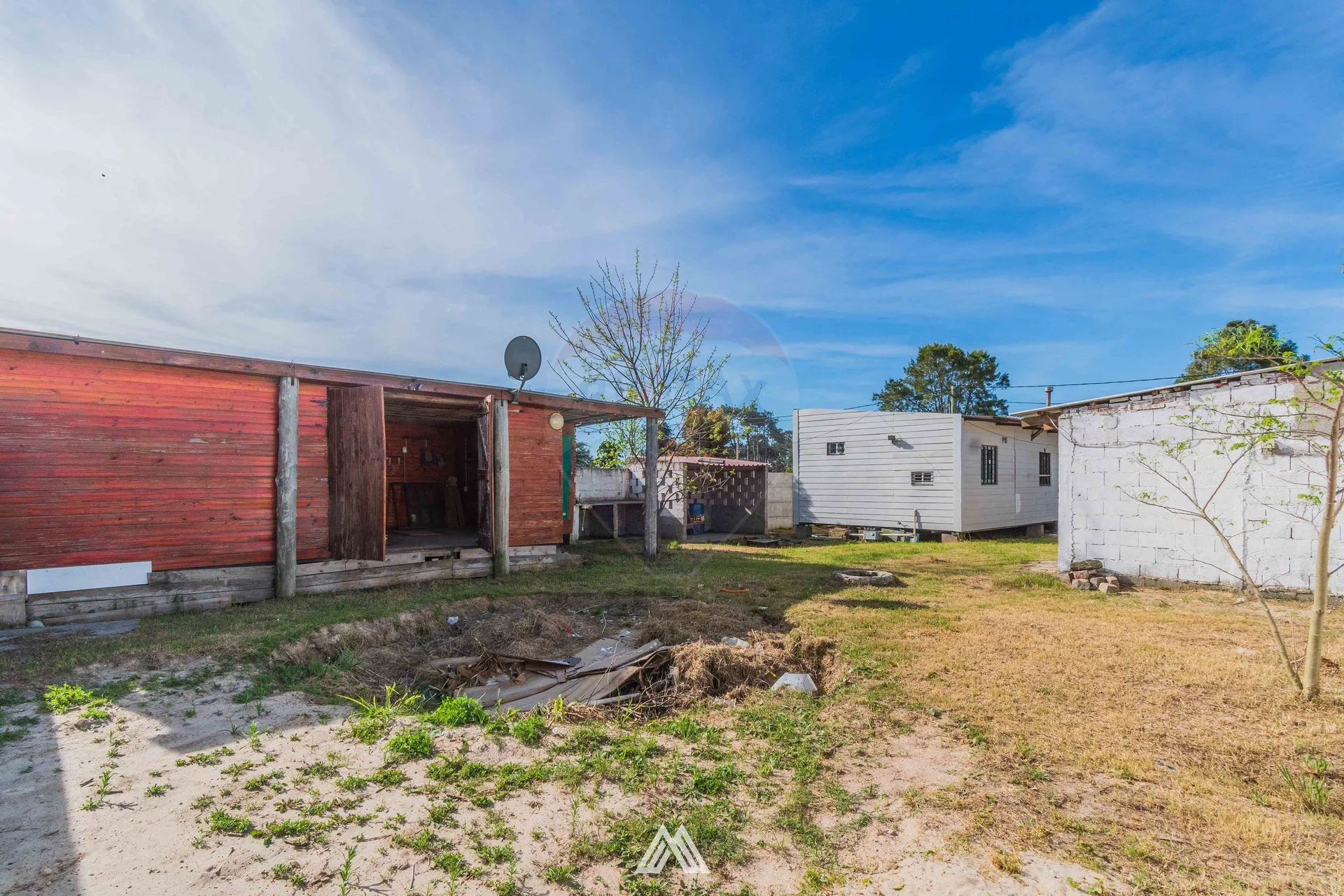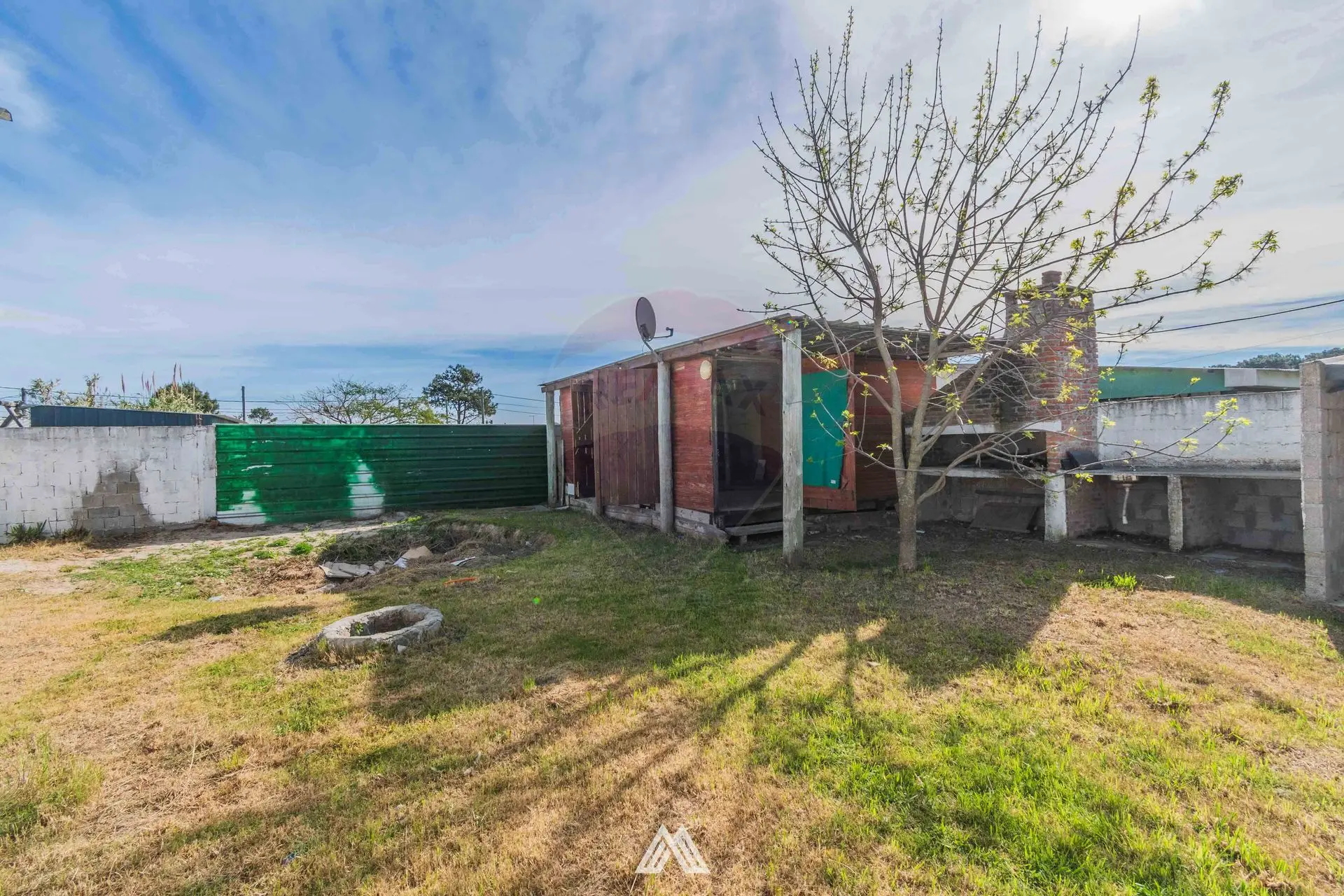 Al fondo cabaña de madera con cocina y baño. Le faltan terminaciones.