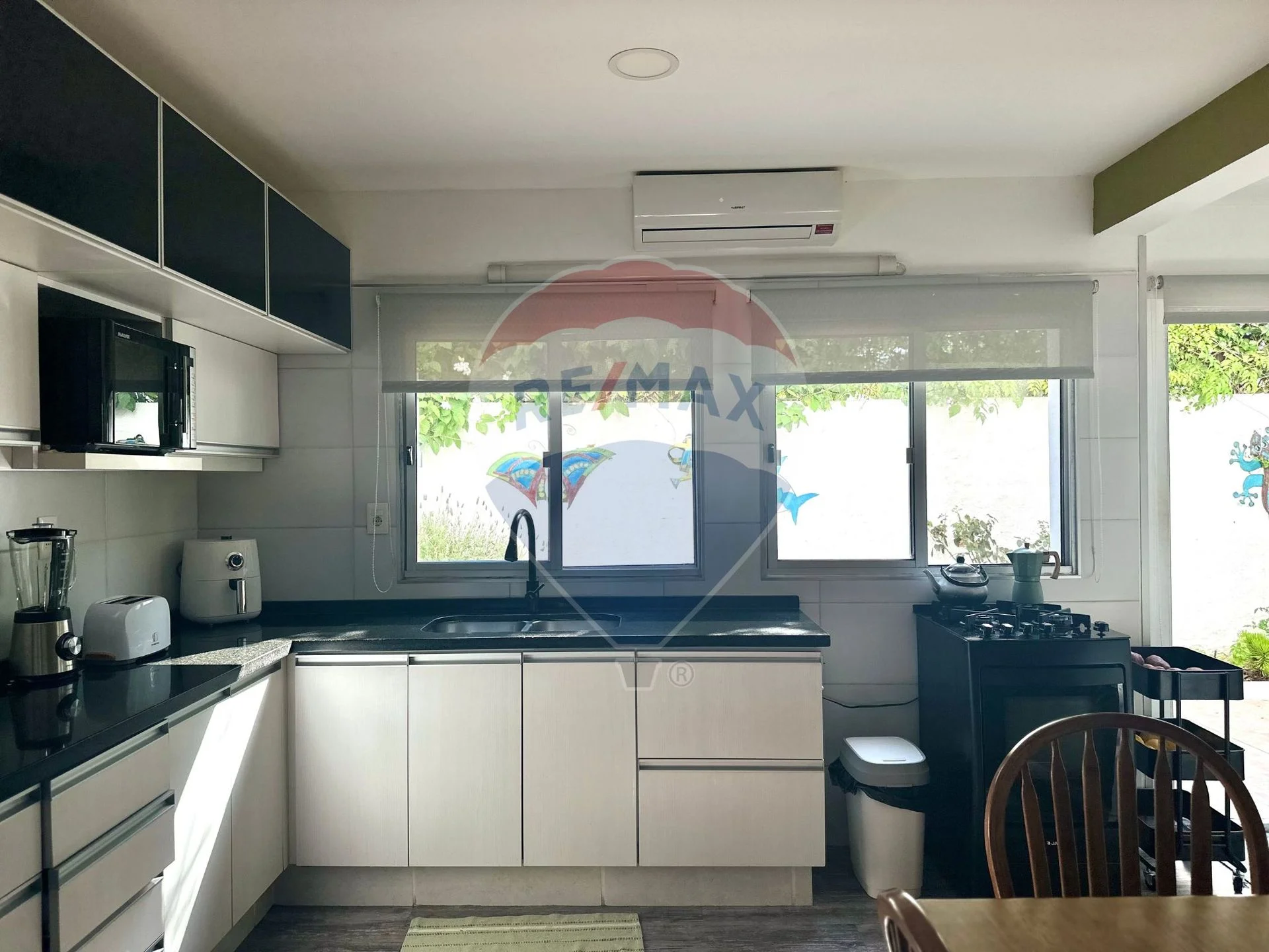 Cocina definida con muebles aéreos y bajo mesada en excelentes condiciones, cuarto de lavado y salida a un patio lateral.
