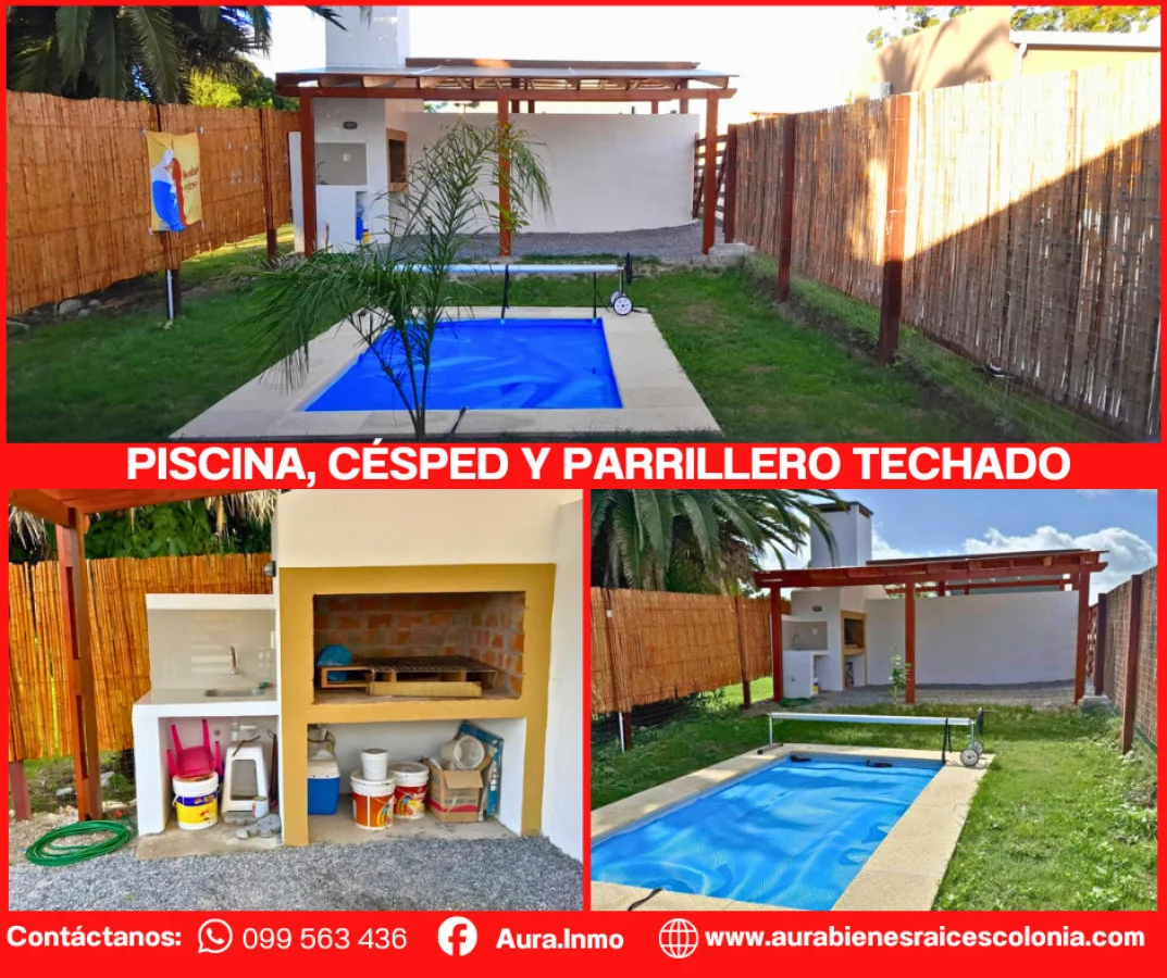 Piscina cercada, césped y parrillero techado, perfectos para reuniones y disfrute al aire libre