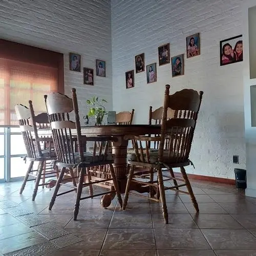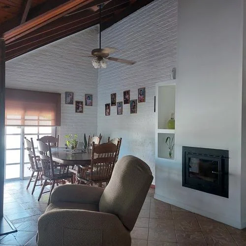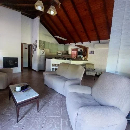 Cuenta con 3 dormitorios, 2 baños completos y un amplio living con estufa a leña y turbina, que distribuye el calor a toda la casa, creando un ambiente acogedor en invierno.