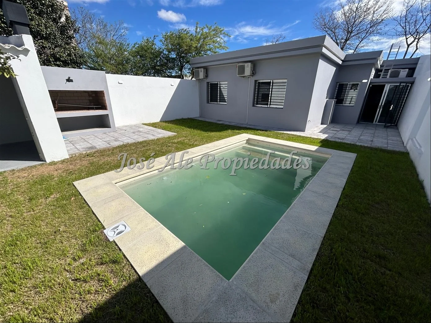 Comodidades: - Living independiente con estufa calefactor doble frente - Espaciosa cocina comedor con barra pasa platos de madera, mobiliarios aéreos y bajo mesada a medida, dispone de horno y anafe empotrados - 3 Cómodos dormitorios con armarios empotrados (dos de ellos con aire acondicionado) - 2 Baños modernos, uno de ellos en suite - Garaje con portón automatizado y acceso directo al interior de la propiedad. - Hermoso fondo completamente amurado con hermoso césped y árboles - Hermosa piscina para disfrutar en familia y amigos - Parrillero - Galpón lavadero