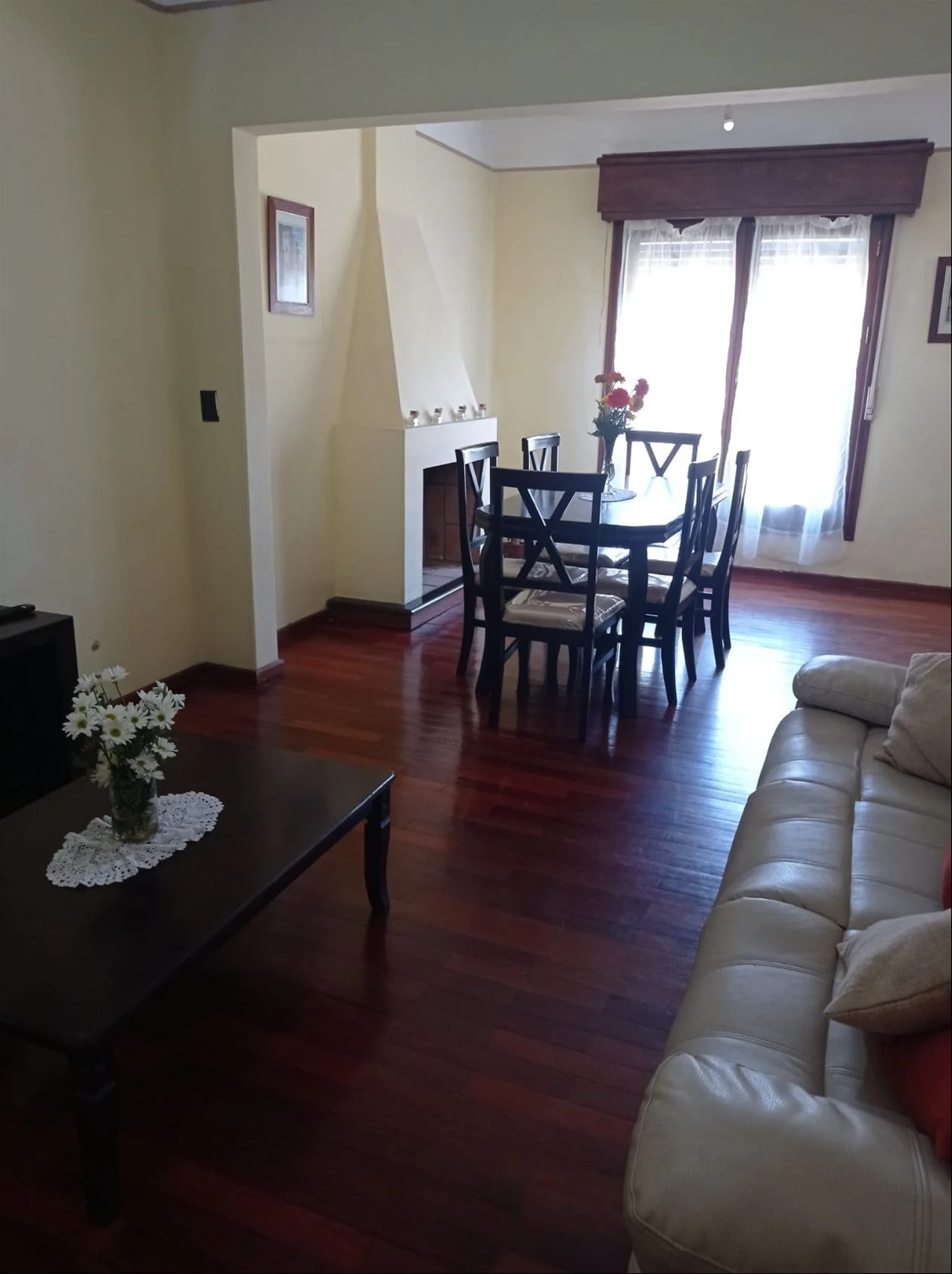 Estar con estufa a leña, a continuación living comedor amplio y cómodo;