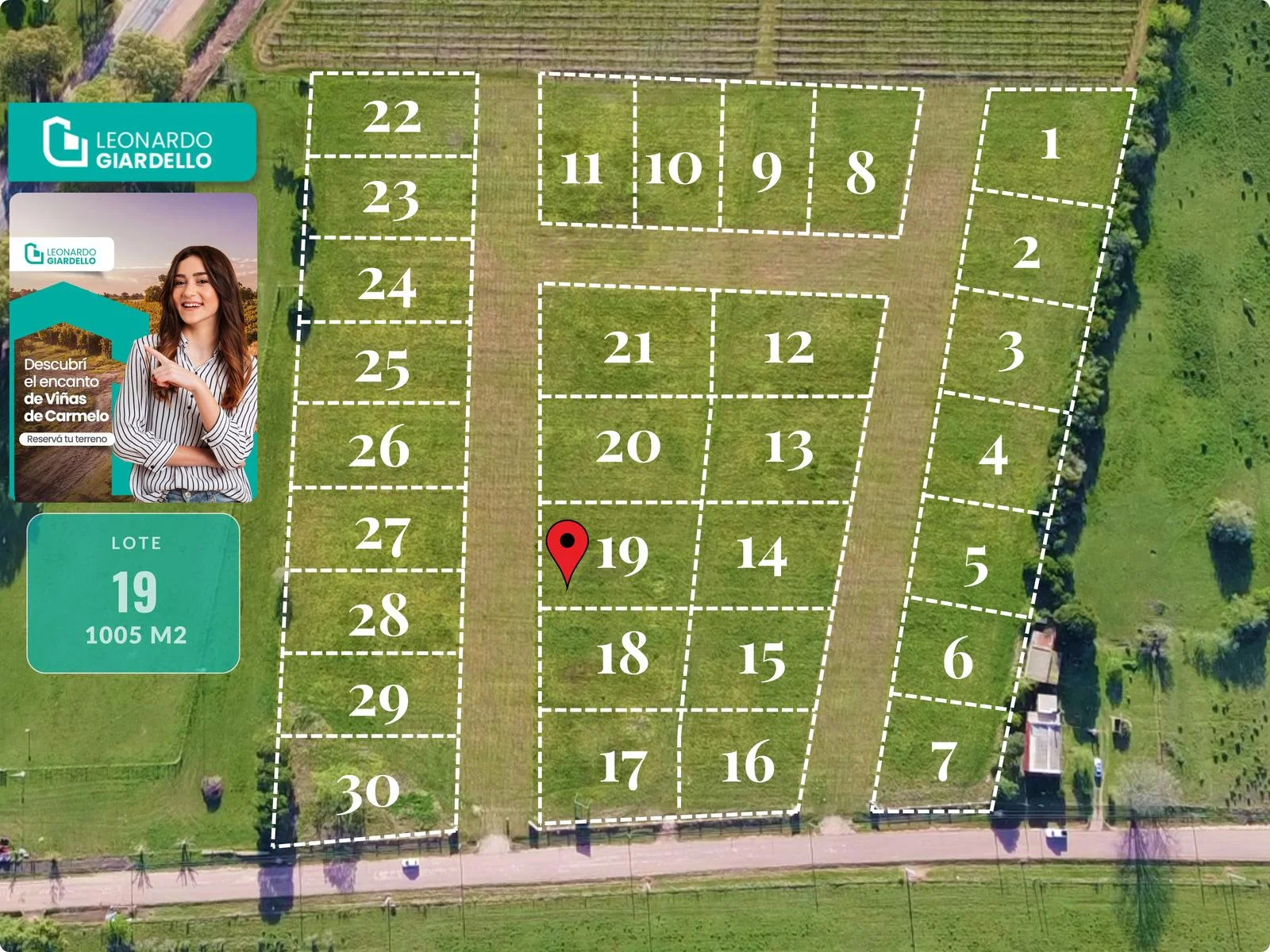 Características:- Lote 19 de 1005 m2 con orientación sur- De fácil acceso a metros de ruta 21- Zona muy solicitada para edificar- Sobre Calle Dr. Eduardo Irastorza entre Ruta 21 y Calle BrasilIdeal inversión para edificar en un entorno natural, lejos del ruido de la ciudad pero cerca de todos sus servicios.Viñedos y hermosos atardeceres hacen de este fraccionamiento un entorno único para construir la propiedad de tu sueñosFinanciación Propia / Precio para Inversor